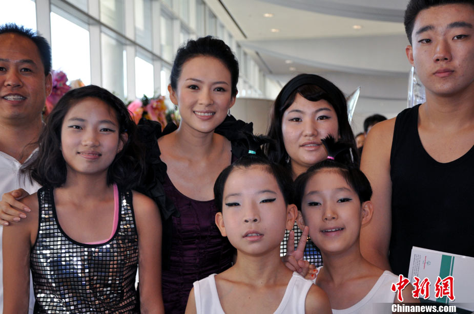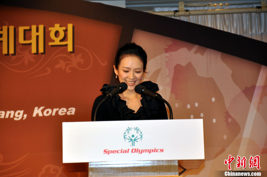 當(dāng)?shù)貢r(shí)間9月15日上午,國際特奧會在首爾舉辦“2013年特殊奧林匹克冬季運(yùn)動會”新聞發(fā)布會和簽字儀式,并宣布韓國平昌將成為本屆冬季特奧會的主辦地。特奧全球形象大使、國際影星章子怡出席發(fā)布會,身體力行關(guān)愛智障人士,為他們的表演和精神鼓勁加油。美國加州州長、前動作巨星阿諾德•施瓦辛格出席該活動,并與章子怡等共同見證特奧的啟動。圖為章子怡為智障兒童加油打氣。
