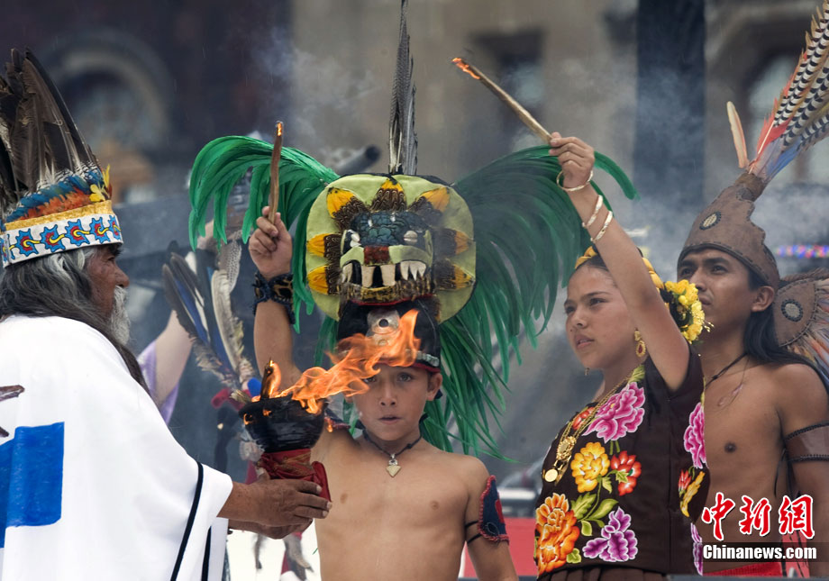 當?shù)貢r間9月15日,墨西哥首都墨西哥城的廣場上舉行了紀念獨立200周年慶;顒娱_幕式表演。