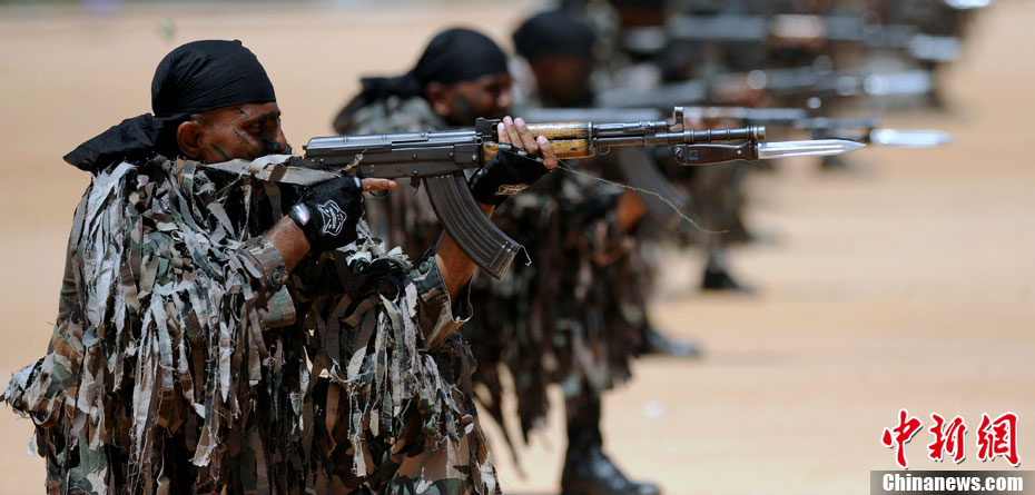 9月17日,在斯里蘭卡東北部城市亭可馬里舉行的空軍閱兵儀式上,116名空軍特種兵展示他們的各項(xiàng)技能。自2009年泰米爾猛虎組織(全稱,泰米爾·伊拉姆猛虎解放組織)的首領(lǐng)普拉巴卡蘭被擊斃,其基地被政府軍攻陷后,斯里蘭卡結(jié)束了長達(dá)25年的內(nèi)戰(zhàn),軍隊實(shí)力不斷增加。