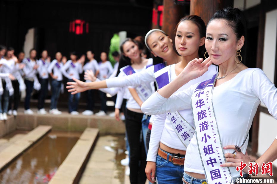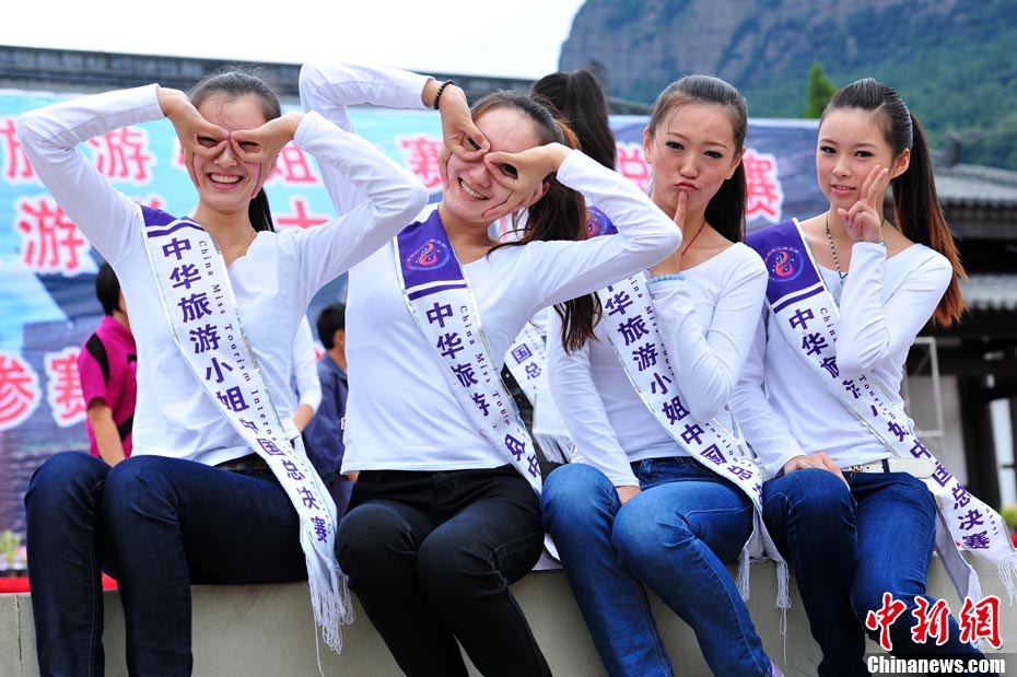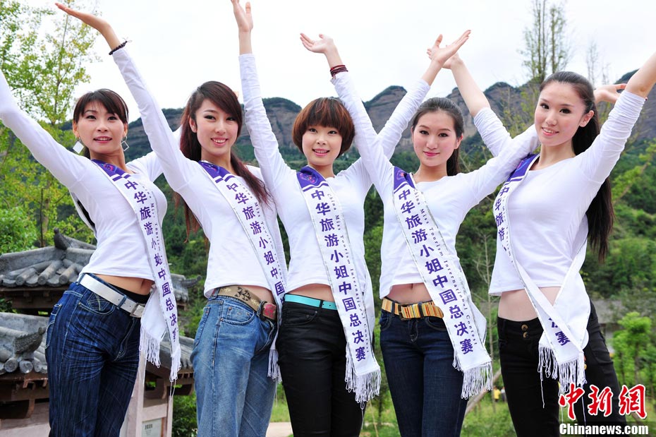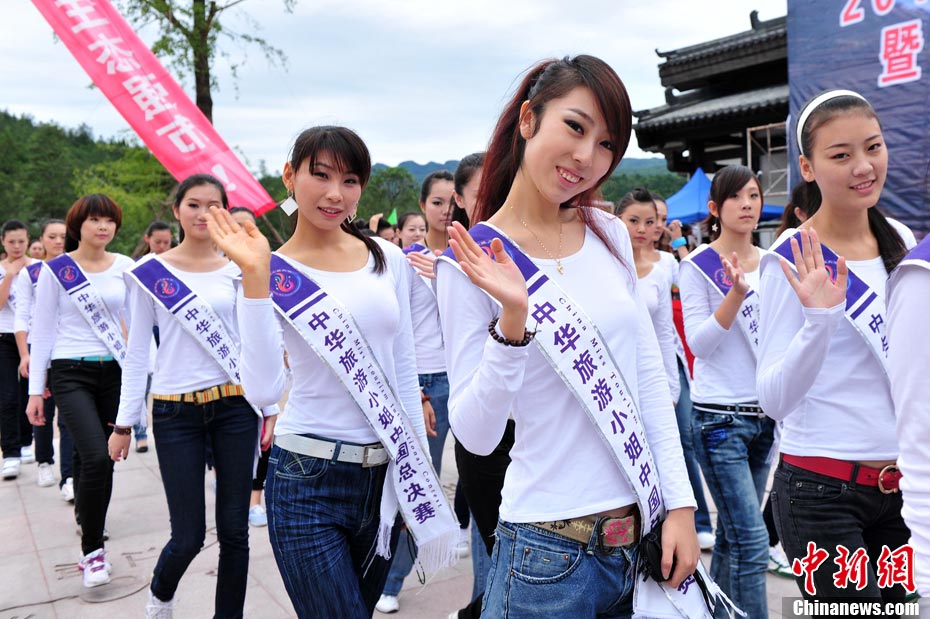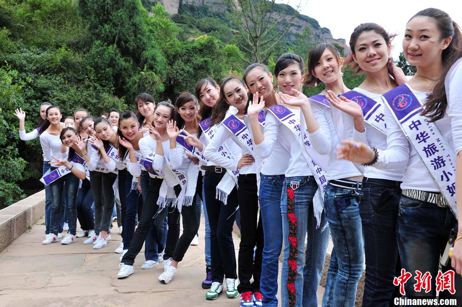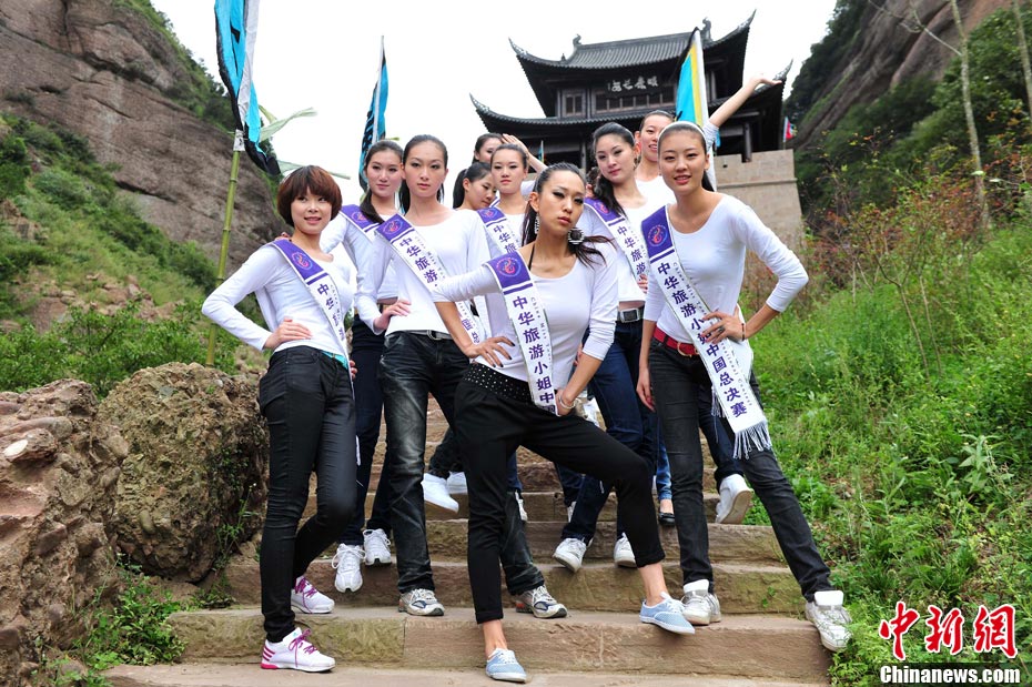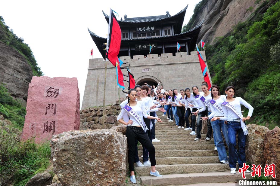 9月23日,2010中華旅游小姐中國(guó)總決賽暨劍門(mén)關(guān)旅游形象大使全國(guó)選拔賽在四川省劍閣縣正式開(kāi)賽。來(lái)自全國(guó)各省區(qū)的40名佳麗同登劍門(mén)關(guān),用美麗的身姿為這座千年蜀道雄關(guān)增添了靚麗的風(fēng)景線。中新社記者 李學(xué)仕 攝