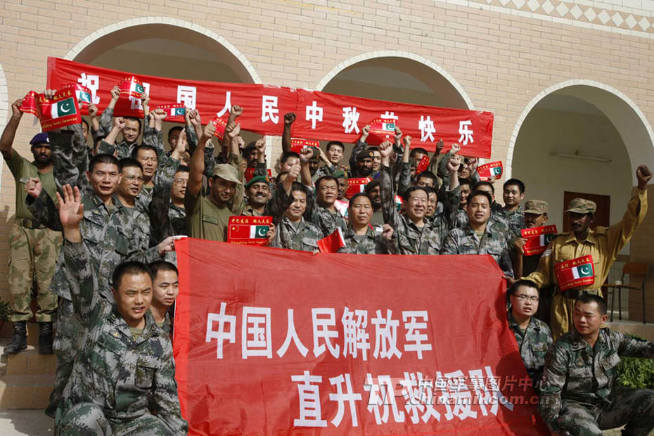 中國援巴直升機(jī)救援隊的隊員到達(dá)海德拉巴市巴方駐軍軍營后,積極主動協(xié)調(diào)幫助駐地巴方軍人研究制定直升機(jī)運(yùn)送物資、搶救傷員等一系列事宜,連日來,通過雙方軍人的共同磋商已達(dá)成了救災(zāi)預(yù)案,雙方軍人在交往中增進(jìn)了友誼,為慶祝中國傳統(tǒng)的中秋佳節(jié),巴方官兵來到中方援巴人員駐地,開展一系列文化慶祝活動。