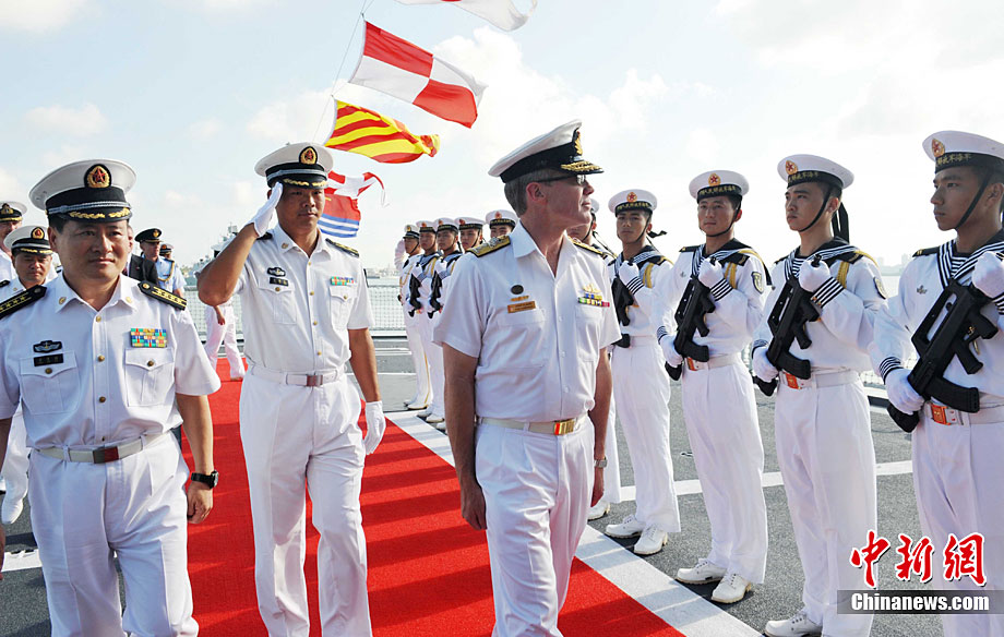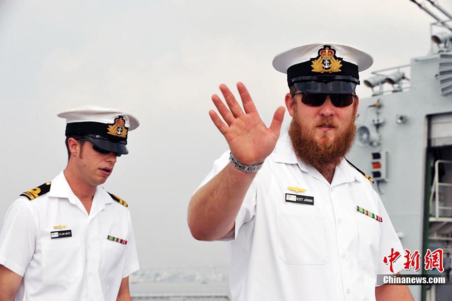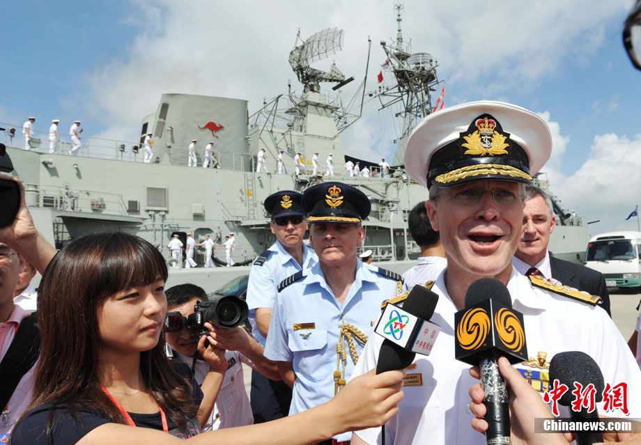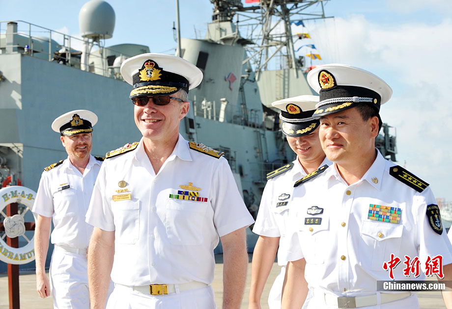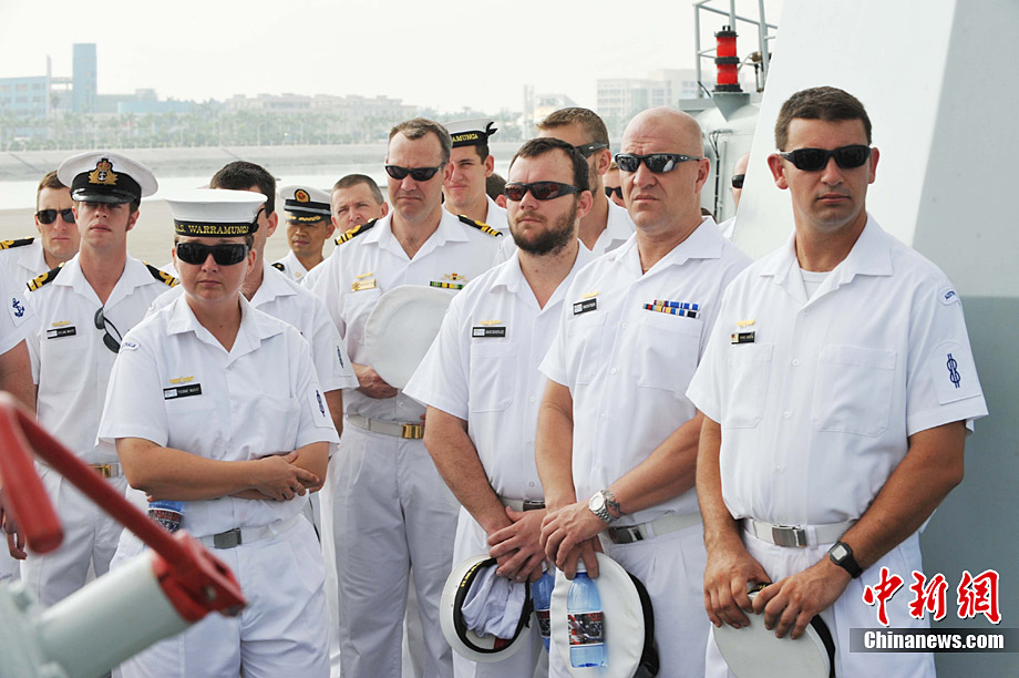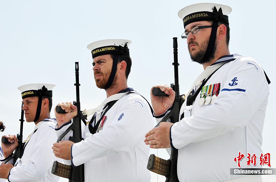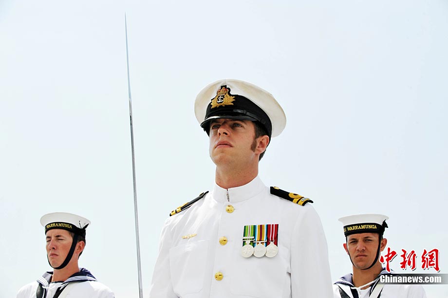 9月26日,應中國人民解放軍海軍邀請,澳大利亞海軍艦隊司令吉爾摩少將率海軍“瓦拉蒙加”號護衛(wèi)艦抵達湛江某軍港進行友好訪問,南海艦隊舉行了隆重的歡迎儀式。中新社記者 陳文 攝
