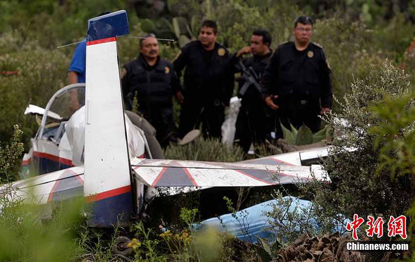 9月25日,墨西哥普埃布拉州的特卡馬查爾科,警察清理墜機(jī)現(xiàn)場。當(dāng)天,墨西哥一架小型飛機(jī)在特卡馬查爾科墜毀,飛機(jī)上的兩名商人遇難。
