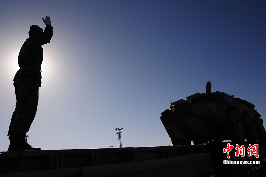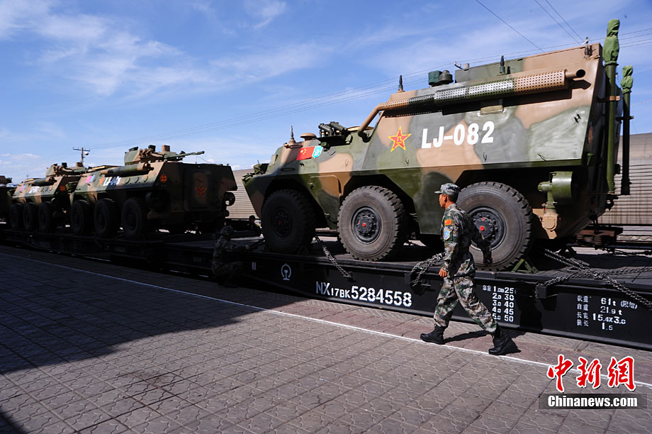 9月10日至9月25日,為期16天的“和平使命-2010”聯(lián)合反恐軍事演習在哈薩克斯坦舉行。圖為中方參演部隊在做出發(fā)前的準備。張斌 攝