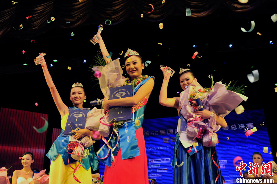 9月26日晚,第50屆國際小姐中國大賽總決賽暨頒獎(jiǎng)晚會在北京之夜香艷落幕。43名佳麗通過旗袍、個(gè)性服飾、泳裝和晚禮服的展示,動聽的歌聲和優(yōu)美的舞蹈為眾人獻(xiàn)上了一場精彩的視覺盛宴。經(jīng)過激烈的角逐和比拼,來自湖北的41號佳麗袁思怡奪得冠軍,榮膺“中國小姐”稱號。34號武靜羽和44號魏嘉寶分獲亞軍和季軍。中新網(wǎng)記者 金碩 攝
