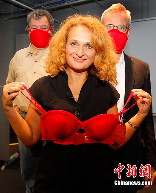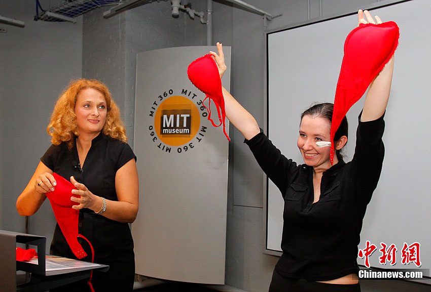 當(dāng)?shù)貢r(shí)間9月28日,科學(xué)家博德納在美國(guó)麻省理工學(xué)院博物館公開展演了她的發(fā)明——“應(yīng)急胸罩”。該款胸罩可以在瞬間變成防毒面具,保護(hù)使用者免遭致命生化制劑的攻擊。憑借這款“防毒胸罩”,博德納曾獲得2009年“搞笑諾貝爾獎(jiǎng)”的公共健康獎(jiǎng)。