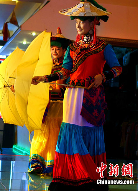 西昌市一家彝族特色餐館,9月29日表演民族舞蹈、展示民族服飾,表達(dá)民族情懷,祝福中國(guó)第二顆繞月探測(cè)衛(wèi)星——“嫦娥二號(hào)”圓滿(mǎn)升空。據(jù)悉,“嫦娥二號(hào)”任務(wù)擬定于9月30日開(kāi)始加注火箭推進(jìn)劑,10月1日至3日擇機(jī)實(shí)施衛(wèi)星發(fā)射。中新社記者 宋吉河 攝