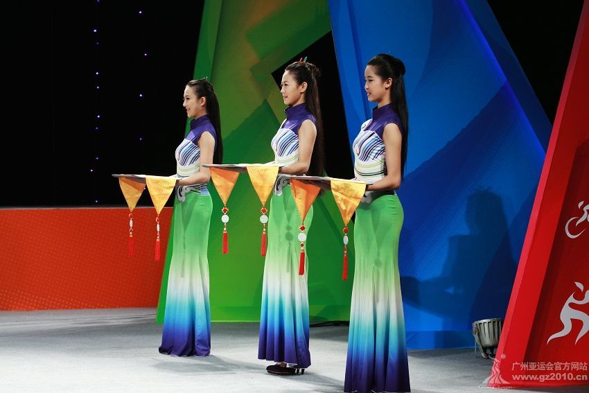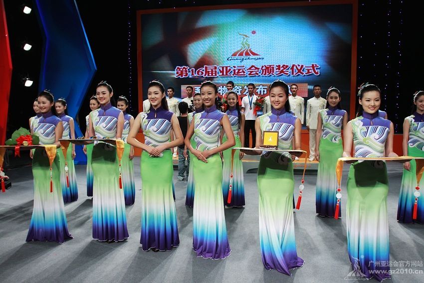 9月29日下午,第16屆亞運(yùn)會頒獎(jiǎng)儀式系列物資發(fā)布儀式在廣州市二少年宮舉行。圖為頒獎(jiǎng)禮儀。圖片來源:廣州亞運(yùn)會官網(wǎng)