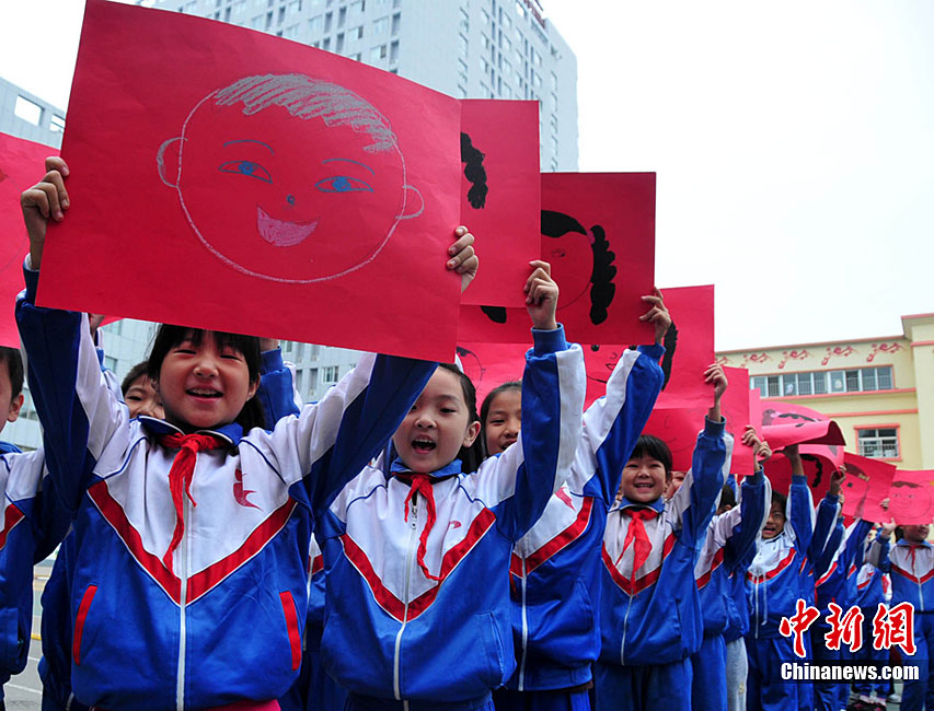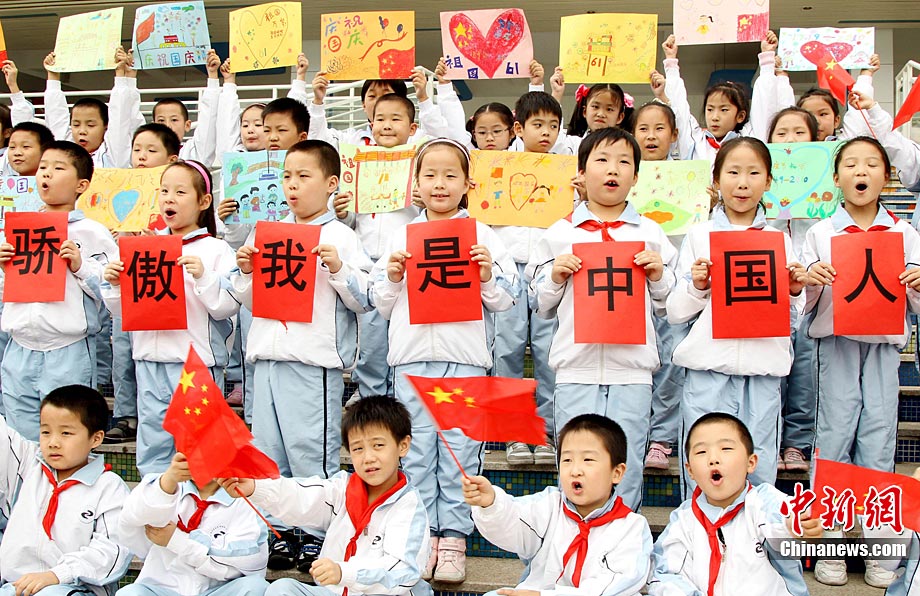 9月27日,一場(chǎng)以“我驕傲,我是中國(guó)人”為主題的國(guó)慶61周年誦讀繪畫賽活動(dòng)在蘇州市一所小學(xué)校舉行,該校百余名一、二年級(jí)學(xué)生以集體誦讀和繪畫展示等形式,表達(dá)對(duì)偉大的祖國(guó)贊美與衷心祝福。王建中 攝 圖片來(lái)源:cnsphoto