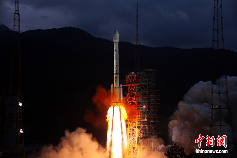 2010年10月1日18時(shí)59分57秒,中國(guó)探月工程二期的技術(shù)先導(dǎo)星“嫦娥二號(hào)”在西昌衛(wèi)星發(fā)射中心由“長(zhǎng)征三號(hào)丙”運(yùn)載火箭發(fā)射升空。中新社記者 宋吉河 攝