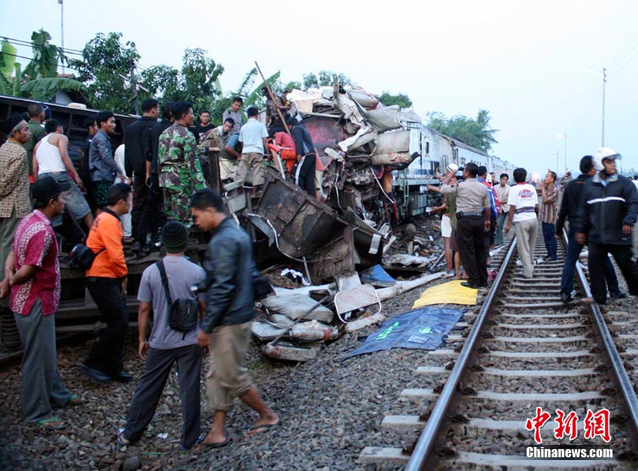 印尼中爪哇省2號(hào)發(fā)生火車相撞事故,至少已造成33人死亡。 事發(fā)在中爪哇北岸的珀塔魯坎,一列行駛中的列車,于凌晨約3點(diǎn)鐘,撞向一列停在車站內(nèi)的列車,當(dāng)時(shí)大部分人都在睡眠中,因此事故造成嚴(yán)重傷亡。