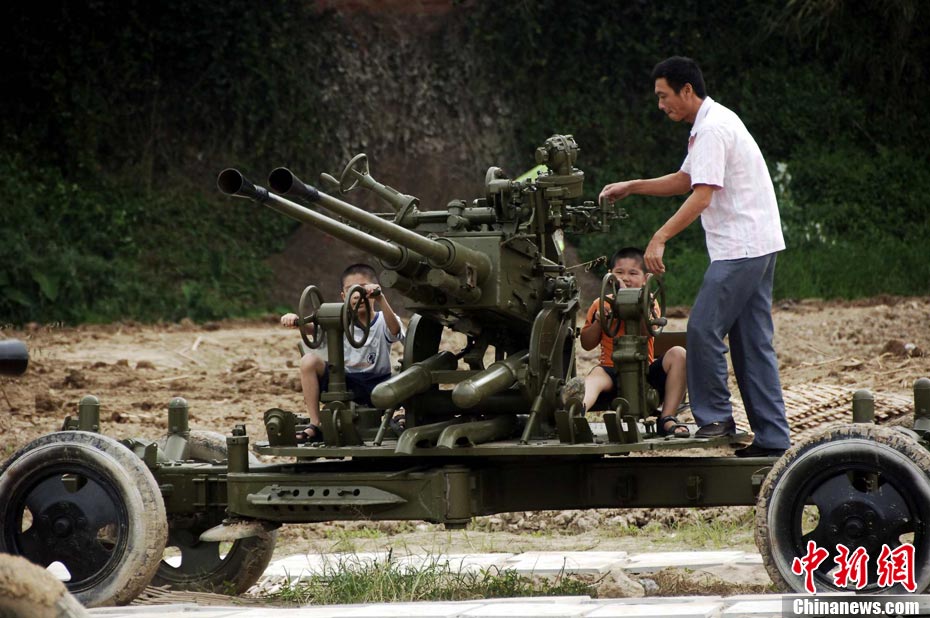 10月3日,福州游客到位于閩侯白沙灣的軍博園過把軍事癮。該軍博園濃縮薈萃了人民解放軍陸、海、空三軍的各類軍械裝備,其中還有經(jīng)歷實戰(zhàn)洗禮、屢獲戰(zhàn)功的功勛裝備。軍博園里還設(shè)置了軍事體驗項目,游客可以現(xiàn)場乘坐水陸兩用坦克,飛機駕駛室操縱、電動25海炮操作等等。
