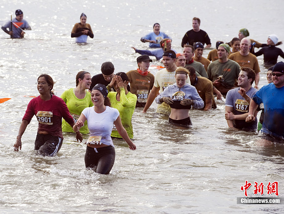 當(dāng)?shù)貢r(shí)間10月3日,數(shù)千名跑步愛好者參加了在美國(guó)紐約梅里爾島舉行的泥地跑步大賽。參賽者要在長(zhǎng)達(dá)一英里的路程中趟過泥地、穿過海灘和各種障礙抵達(dá)終點(diǎn)。