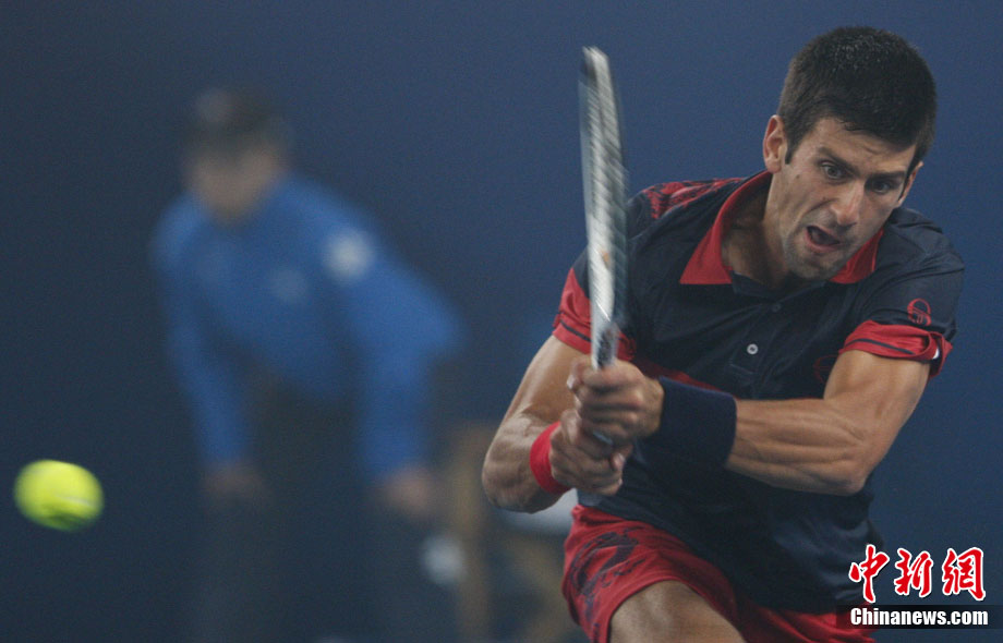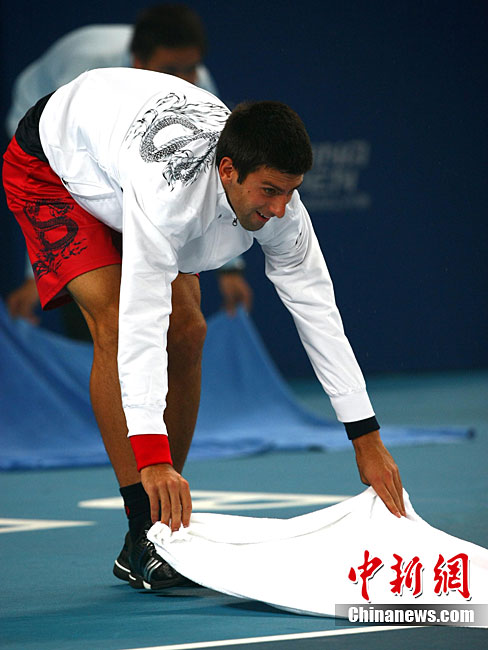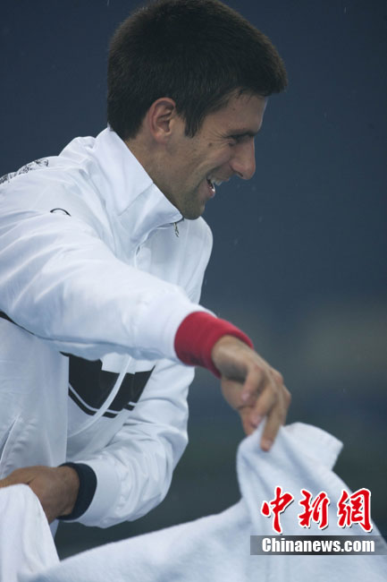 10月10日,總獎(jiǎng)金額為210萬美元的ATP'500中網(wǎng)公開賽進(jìn)入最后一天的爭奪,衛(wèi)冕冠軍德約科維奇與西班牙名將費(fèi)雷爾之間的男單決賽因雨中斷,比賽暫停時(shí)小德以3-1的比分暫時(shí)領(lǐng)先。中新社記者 富田 攝