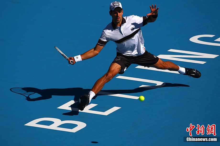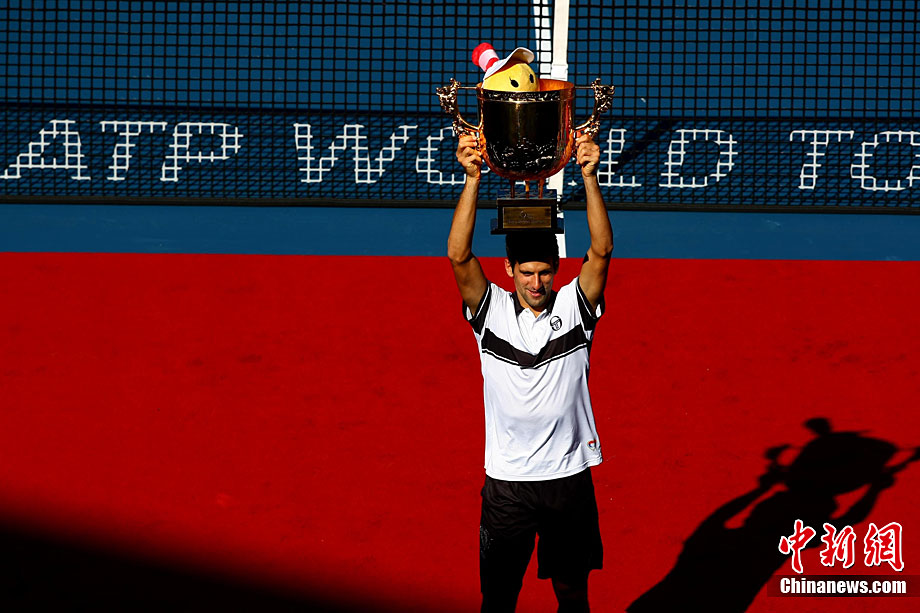 10月11日,中國網(wǎng)球公開賽決出了男單冠軍的歸屬。在這場因雨持續(xù)了兩天的比賽中,衛(wèi)冕冠軍兼頭號種子德約科維奇以6-2/6-4完勝費(fèi)雷爾,成功衛(wèi)冕2010中網(wǎng)男單桂冠。中新社記者 富田 攝