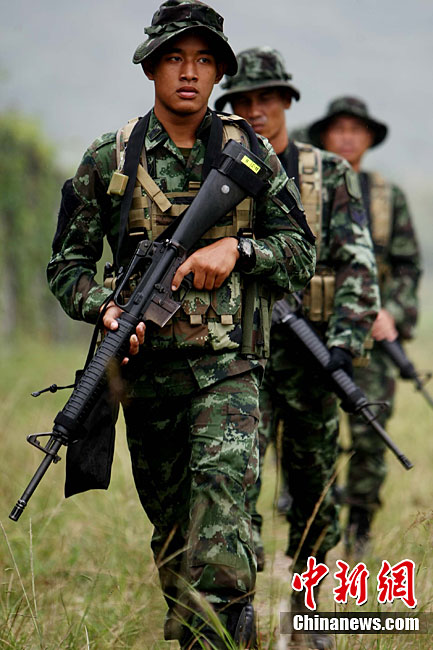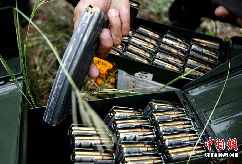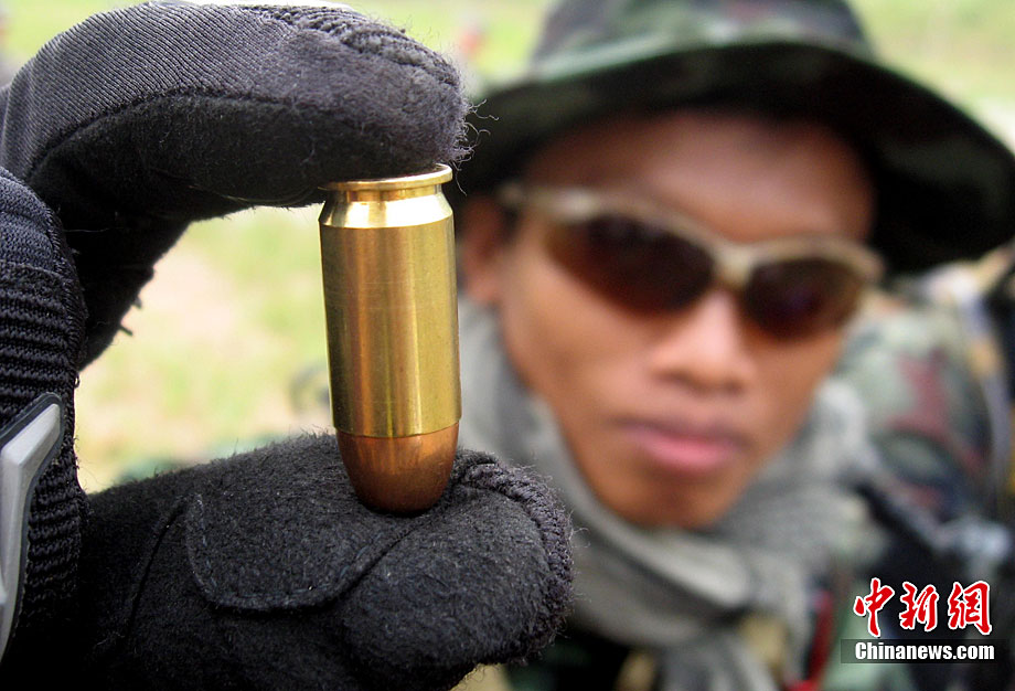 “突擊-2010”中泰陸軍特種部隊反恐聯(lián)合訓練10月6日至20日在廣西壯族自治區(qū)桂林進行。中泰雙方將各派出60余人的特種分隊參加訓練。此次聯(lián)合訓練分展示交流、混編同訓和綜合演練三個階段,主要圍繞城市反恐基礎(chǔ)技能訓練、混編分隊戰(zhàn)術(shù)訓練等科目進行。圖為泰方隊員M16步槍實彈速射。中新社記者 杜洋 攝
