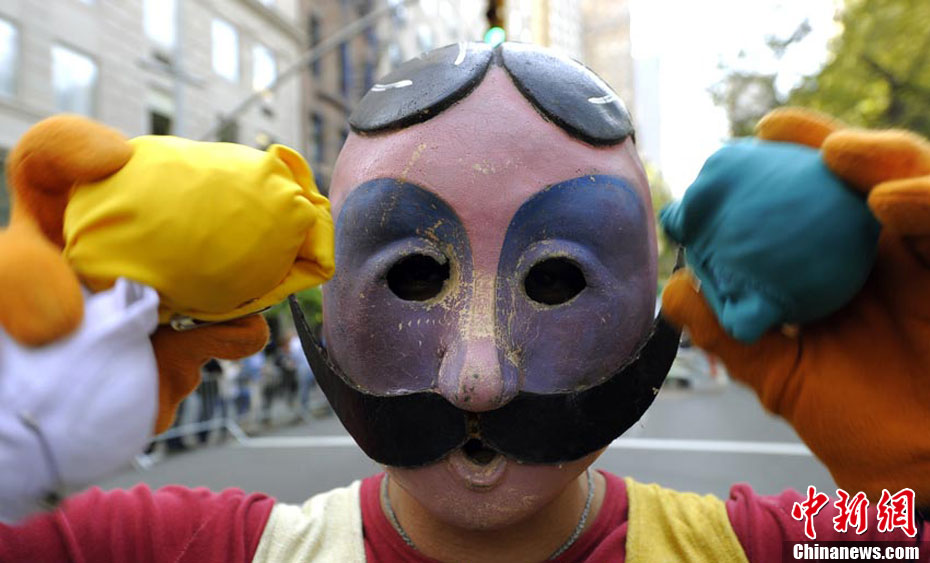 來自意大利劇木偶奇遇記的劇成員在紐約曼哈頓第五大道進行街頭表演。