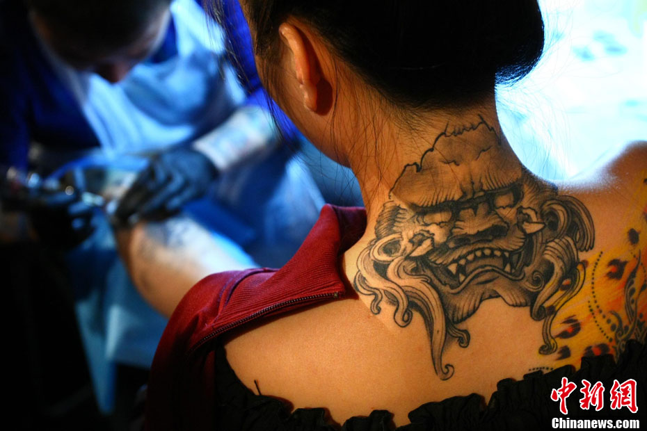 10月15日,中國(國際)紋身藝術(shù)節(jié)在北京798藝術(shù)區(qū)開幕,這是國內(nèi)舉辦的首次國際性紋身藝術(shù)節(jié)。本屆紋身展會的宗旨是:“讓藝術(shù)向紋身靠攏”,為國內(nèi)外紋身師提供一個公平、公正的同臺獻藝和交流的平臺。來自美國、澳大利亞、新西蘭等國以及中國許多省市的紋身師現(xiàn)場展示富有個性、創(chuàng)意十足的紋身作品。藝術(shù)節(jié)將持續(xù)至17日。 中新社發(fā) 富田 攝