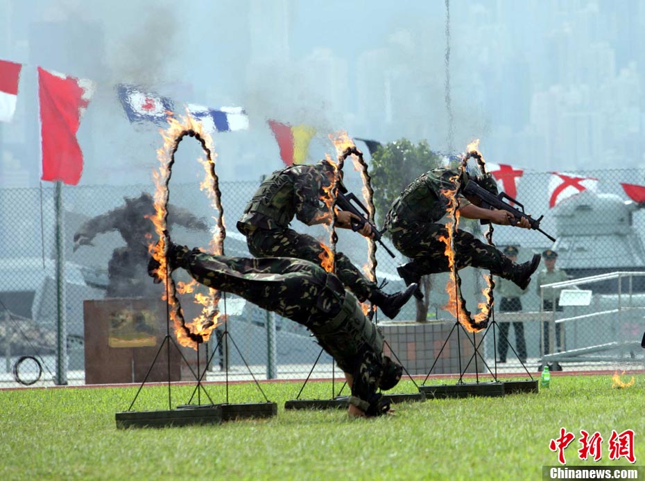 10月16日,中國(guó)人民解放軍駐港部隊(duì)特種兵在香港昂船洲海軍基地進(jìn)行“獵人戰(zhàn)斗”演練,展示過(guò)硬的搏擊功夫。當(dāng)天,駐軍與香港各大院校大學(xué)生聯(lián)誼活動(dòng),以各種形式相互交流,增進(jìn)香港學(xué)生對(duì)國(guó)家的了解。 中新社發(fā) 洪少葵 攝