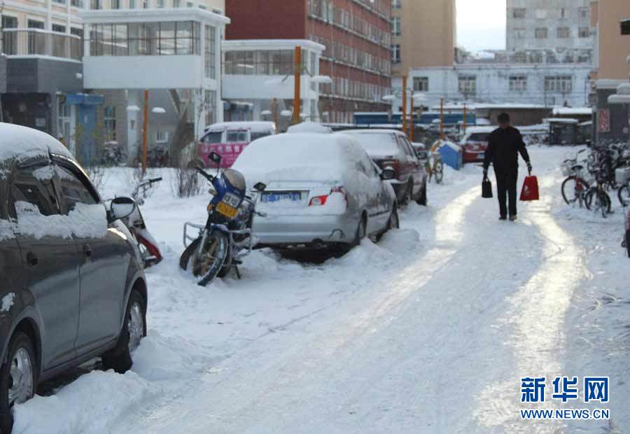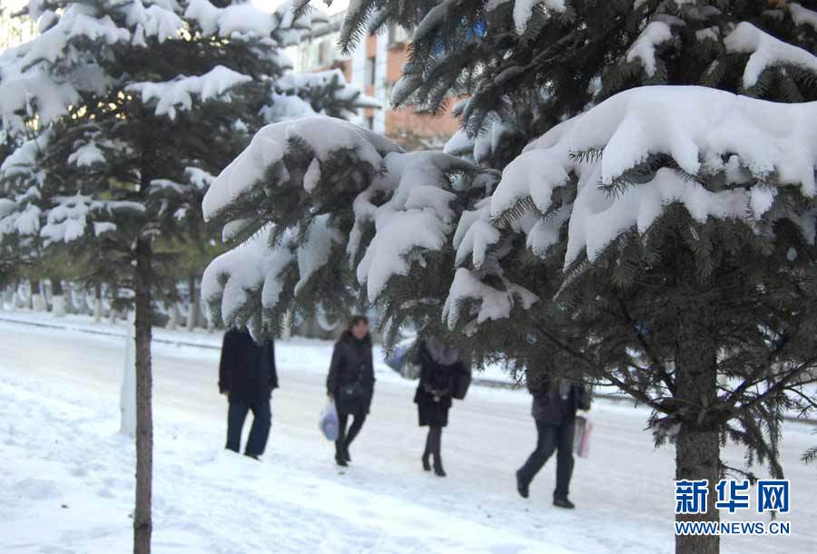 中央氣象臺近日發(fā)布消息,受3股冷空氣影響,新疆、西藏、青海、甘肅、黑龍江和內蒙古等9省區(qū)入冬在即。圖為10月16日,黑龍江省七臺河市降雪,市民打著傘冒雪出行。秦存廣 攝 圖片來源:新華網(wǎng)