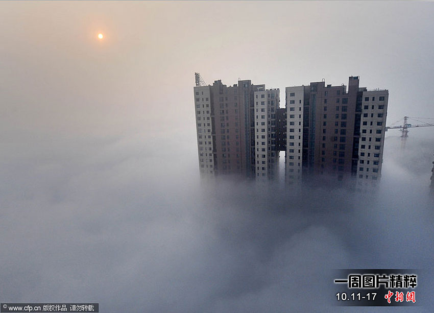10月9日早上6點(diǎn)多,一場(chǎng)罕見(jiàn)的“平流霧”襲擊合肥。合肥城市的建筑掩映在濃霧中異常壯觀。王長(zhǎng)豐 攝 圖片來(lái)源:CFP視覺(jué)中國(guó)