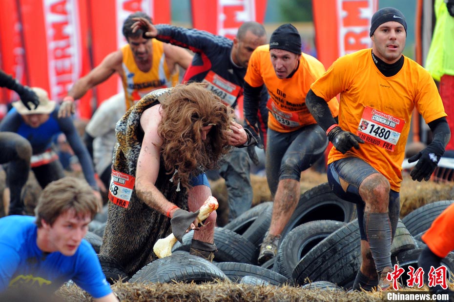 當(dāng)?shù)貢r(shí)間2010年10月17日,法國東部布雷斯(La Bresse)人們參加漁夫“狂奔”跑步大賽。