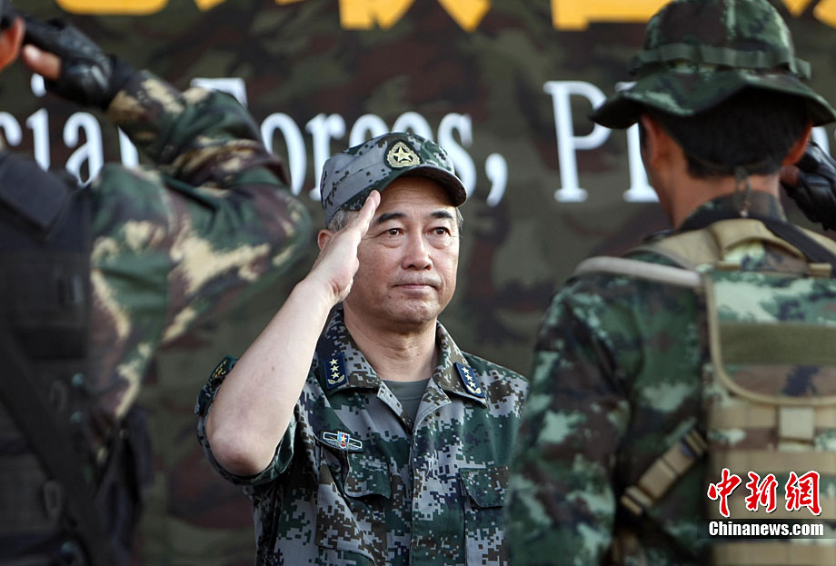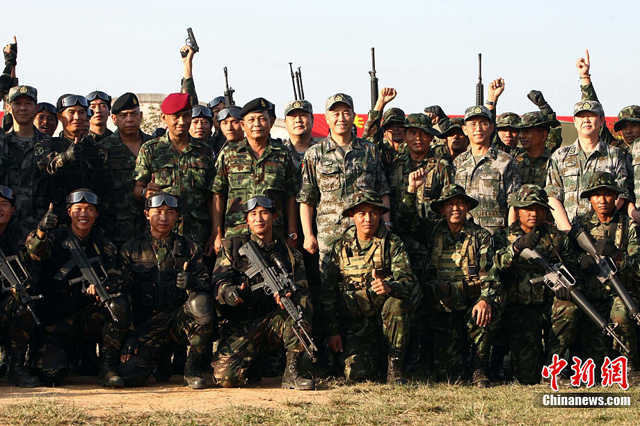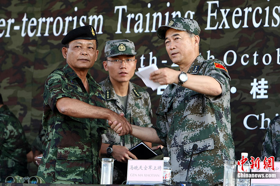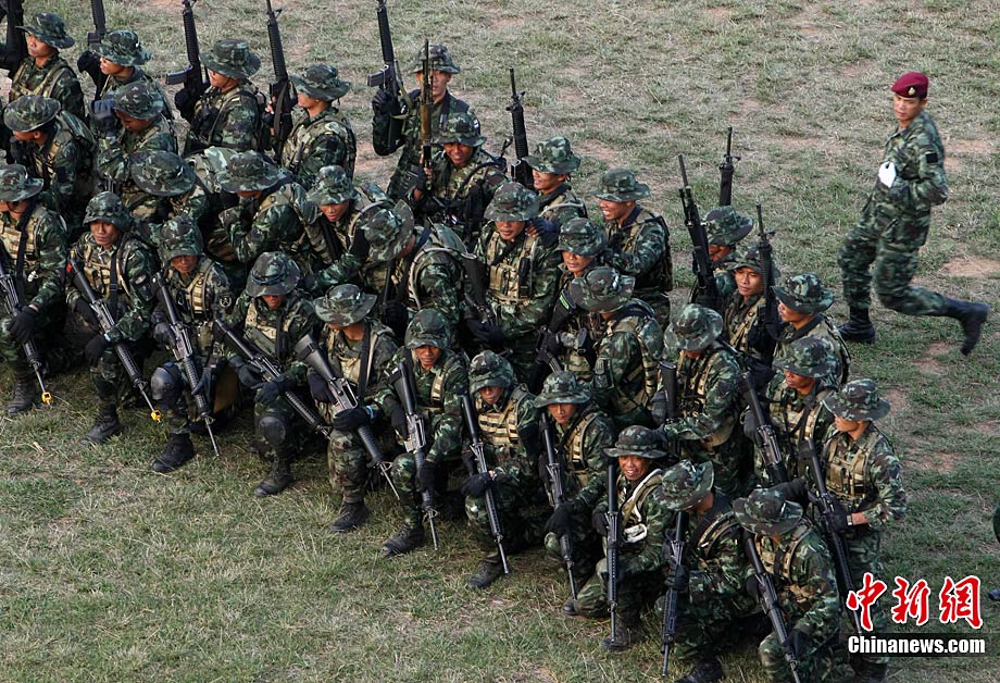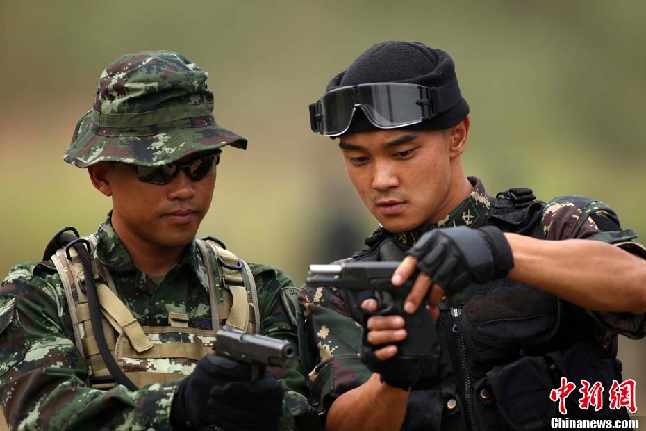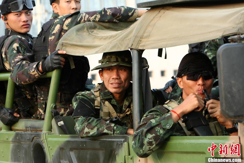 10月19日,“突擊-2010”中泰反恐聯(lián)訓在廣州軍區(qū)“紅嶺”合同戰(zhàn)術(shù)訓練基地舉行“獵鼬”行動實兵綜合演練,圍繞“城市聯(lián)合反恐行動”這一課題,演練了快速封鎖、偵搜排查、隔離疏散、立體突擊4個行動。演練模擬一名為“臭鼬”的國際恐怖組織在泰國制造暴力恐怖活動后,秘密潛入中國G市紅嶺小區(qū),企圖在XX地區(qū)領導人峰會期間繼續(xù)制造恐怖事件,干擾峰會順利進行。中泰兩國政府依據(jù)聯(lián)合反恐協(xié)議,決定成立聯(lián)合指揮機構(gòu),抽調(diào)特種部隊精銳力量組成“獵鼬突擊隊”,共同進行反恐作戰(zhàn)任務。 中新社記者 杜洋 攝