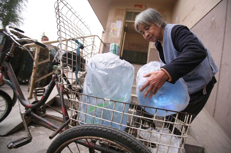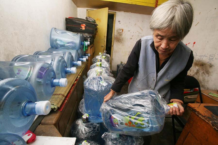 每天早晚都是送水高峰,不論是早上6點還是晚上10點,不論刮風(fēng)下雨,只要顧客一個電話,老人便會送水上門。長時間的搬運,導(dǎo)致她的背駝得十分嚴重。老人寫信委托本報尋求好心人的救助,幫自己的兒孫治病,渡過難關(guān)。王璐 攝/林暉 圖片來源:新華網(wǎng)