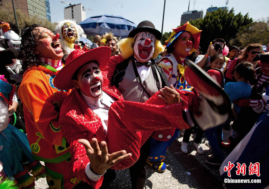 10月20日,數(shù)百名小丑聚集在墨西哥首都墨西哥城,參加在此舉行國際小丑公約大會。