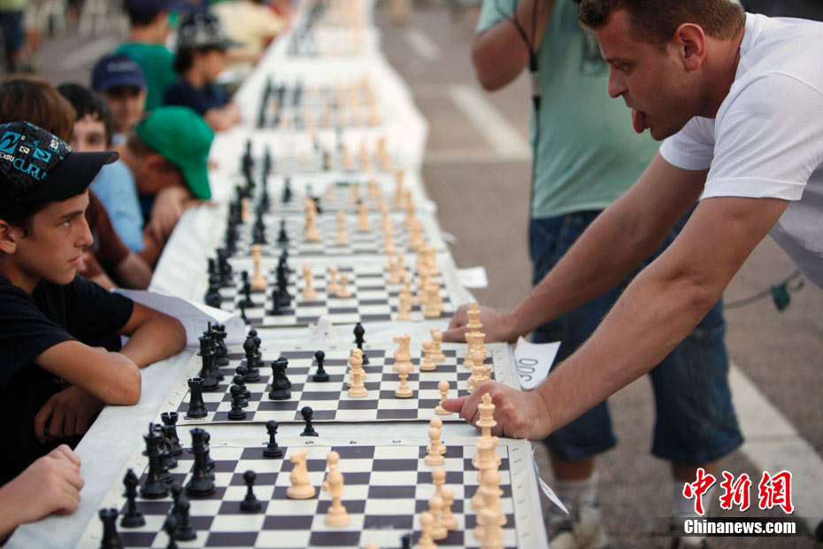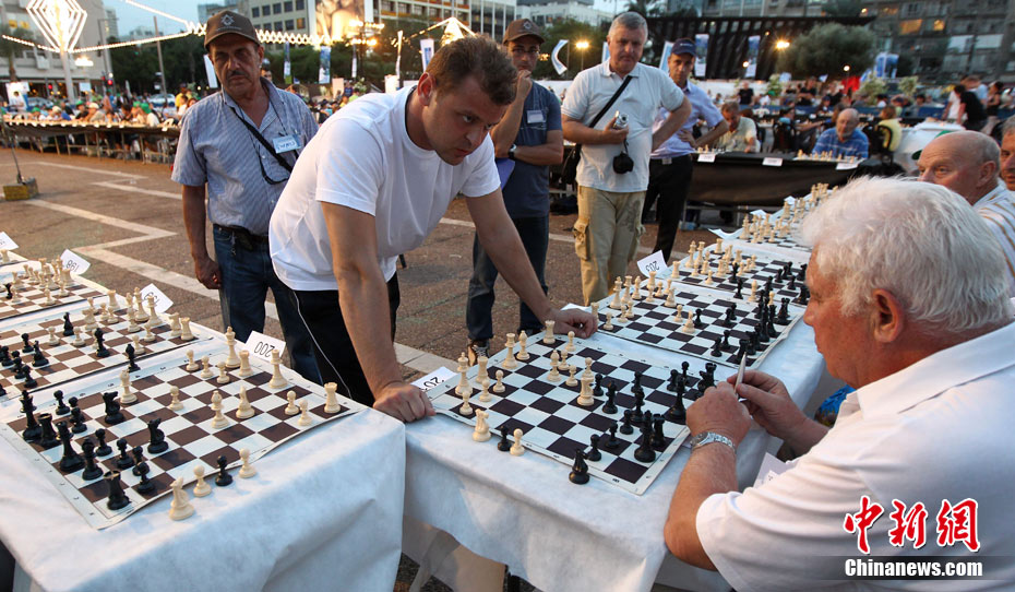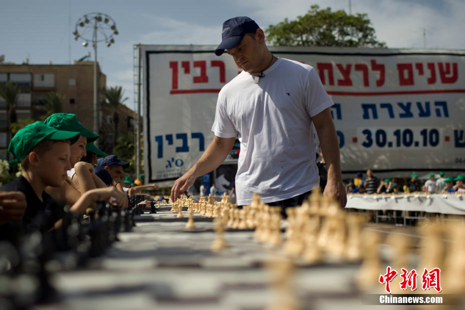 2010年10月21日,以色列特級大師格爾松在特拉維夫的拉賓廣場舉行國際象棋車輪戰(zhàn),與525名棋手對弈,沖擊去年夏天由伊朗大師馬約布創(chuàng)造的1對500名棋手的吉尼斯世界紀錄。
