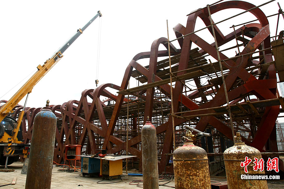 近日,北京通惠河南岸的慶豐公園東側(cè),一座面積約300平方米、三層樓高的建筑,以其酷似國家體育場“鳥巢”的造型吸引了不少人的目光。據(jù)悉,該建筑是正在建設(shè)中的通惠時尚國際廣場的配套建筑。10月20日上午,國家體育場的工作人員已到現(xiàn)場取證,將研判是否涉嫌侵權(quán)。中新社記者 富田 攝