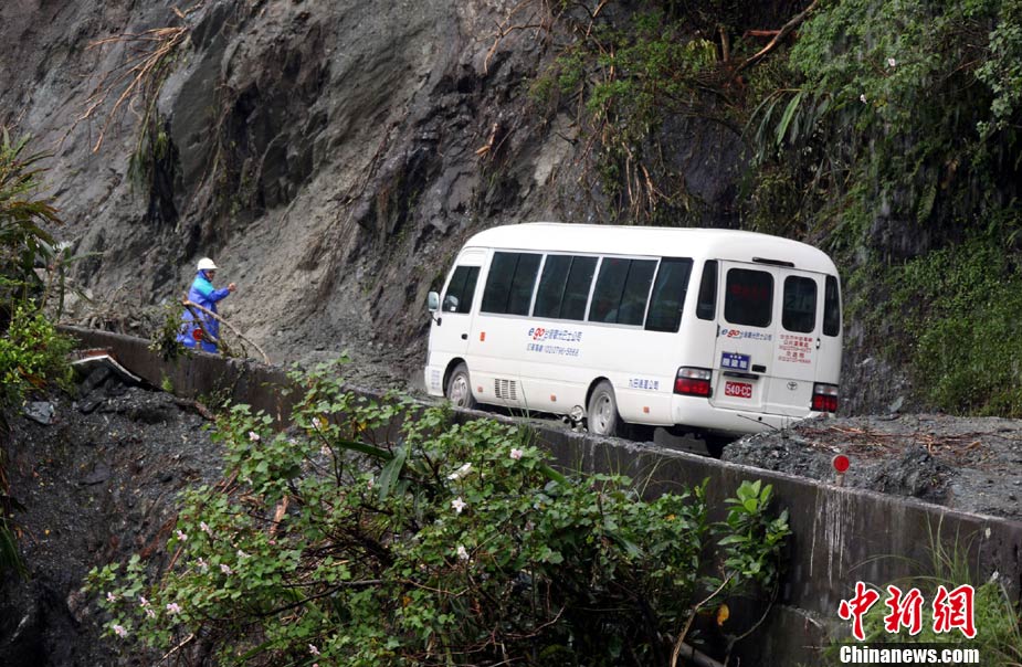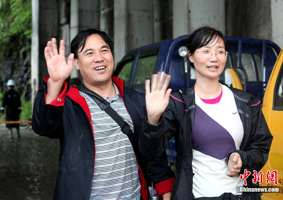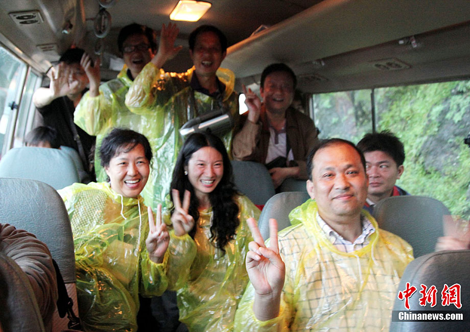 10月22日,21日因受豪雨引起的塌方困在臺(tái)灣蘇花公路的200多名大陸游客,今天有部分已脫險(xiǎn)。圖為從蘇花公路陸路救援現(xiàn)場(chǎng)脫險(xiǎn)的大陸游客團(tuán)。中新社記者 陳立宇 攝