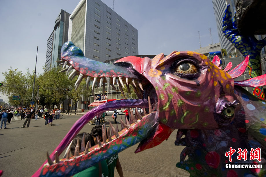 當地時間10月23日,墨西哥首都墨西哥城,人們舉行名為“Alebrijes”的怪獸大游行。Alebrijes是典型的墨西哥瓦哈卡州手工藝品。佩德羅·利納雷斯在1936年創(chuàng)作出名為Alebrije的工藝品,它以紙漿制成,最大的特點就是它是不存在或人們想象的動物。