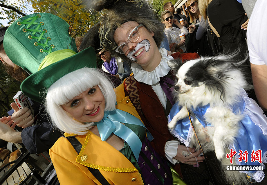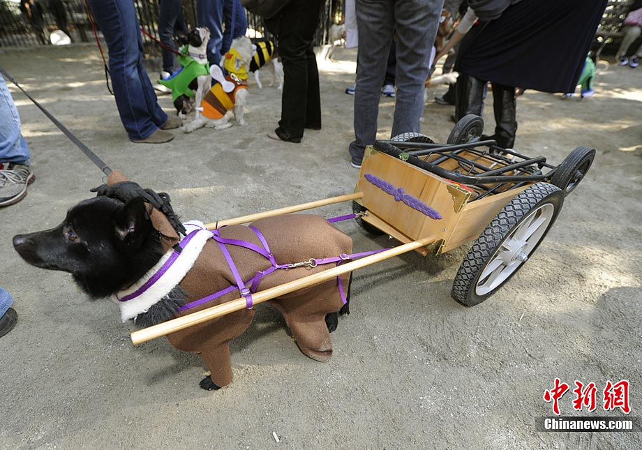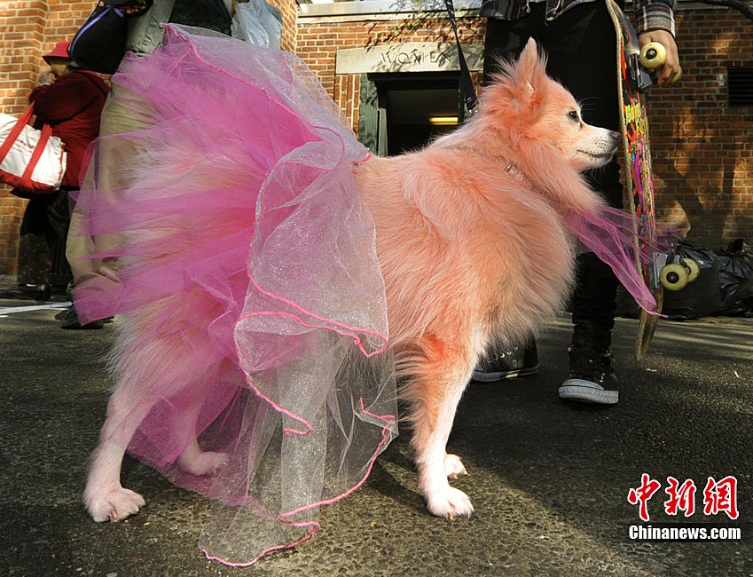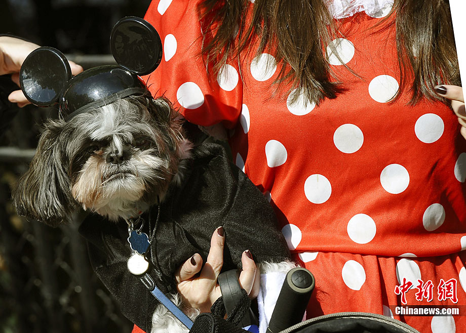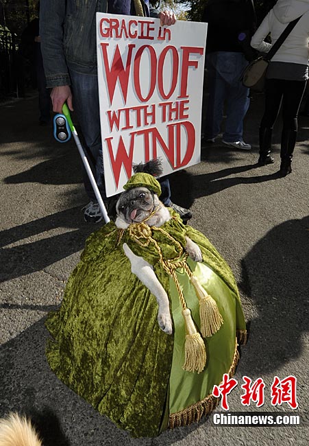 10月31日是西方傳統(tǒng)的萬圣節(jié)。當(dāng)?shù)貢r(shí)間10月23日美國紐約湯普金斯廣場(chǎng)公園舉行了第20屆萬圣節(jié)小狗大游行活動(dòng)!俺鱿被顒(dòng)的小狗們裝扮的造型都很別致,讓人忍俊不禁。