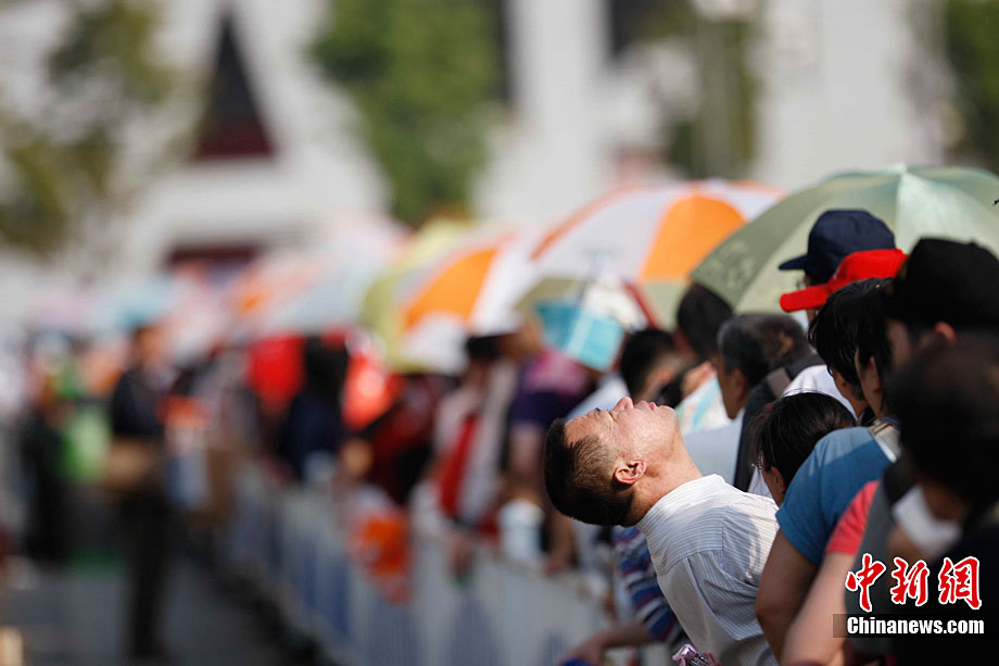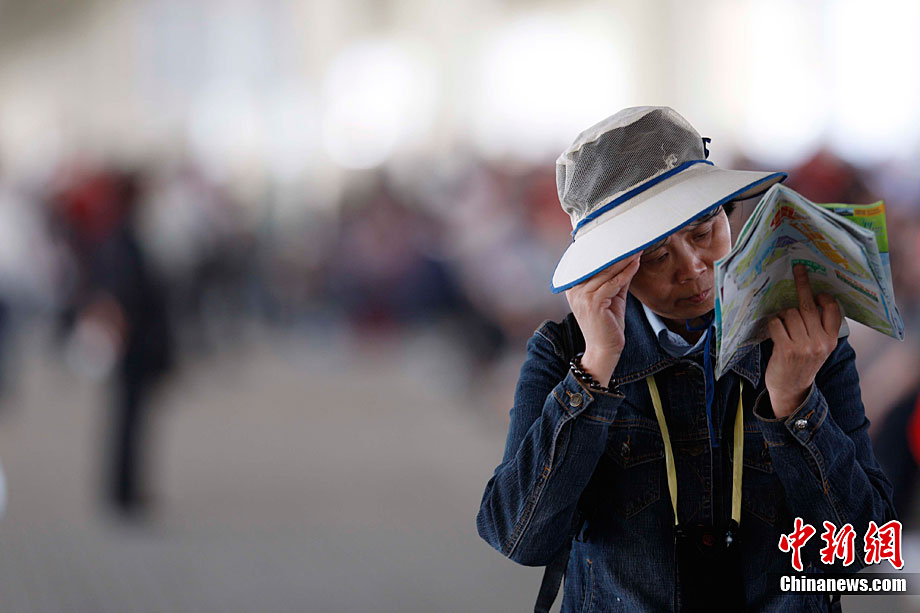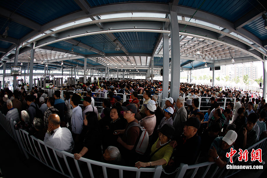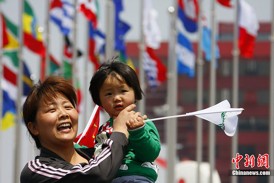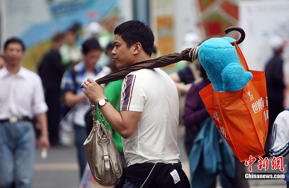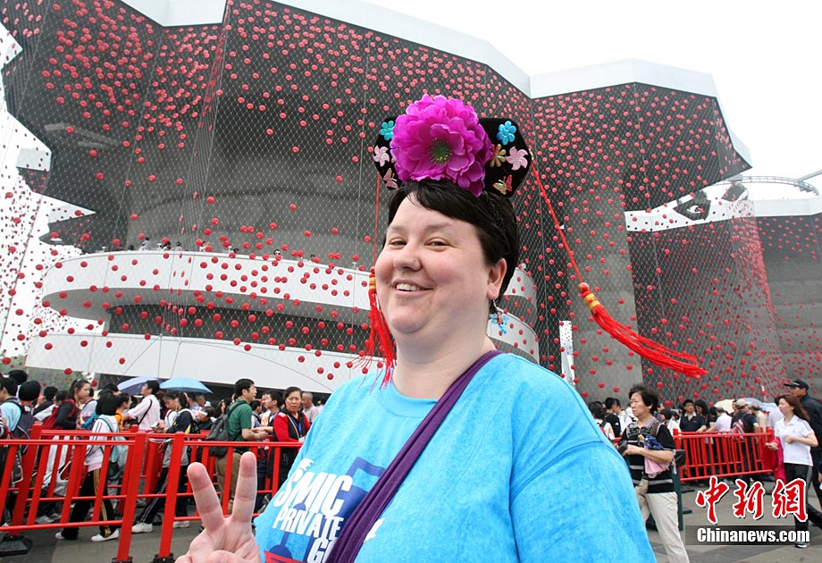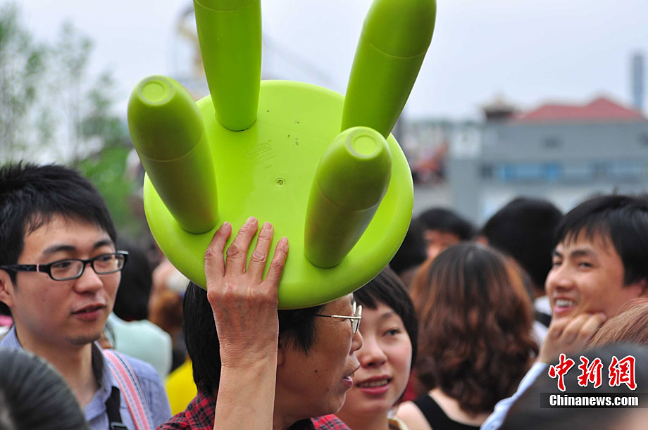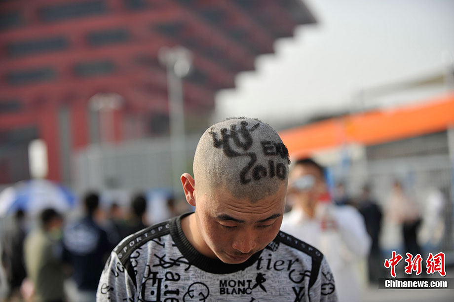 5月4日傍晚,一位腦門(mén)上貼著五星紅旗、一身特殊裝束的“酷哥”參觀上海世博園,吸引了許多游客的眼球。據(jù)了解,他叫韋盛初,廣西南寧人。吳元峰 攝 圖片來(lái)源:CNSPHOTO