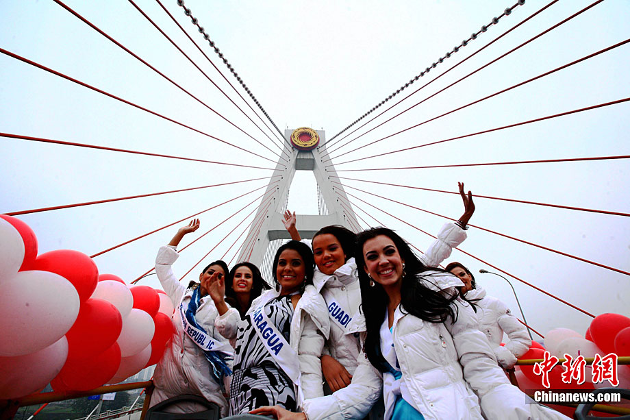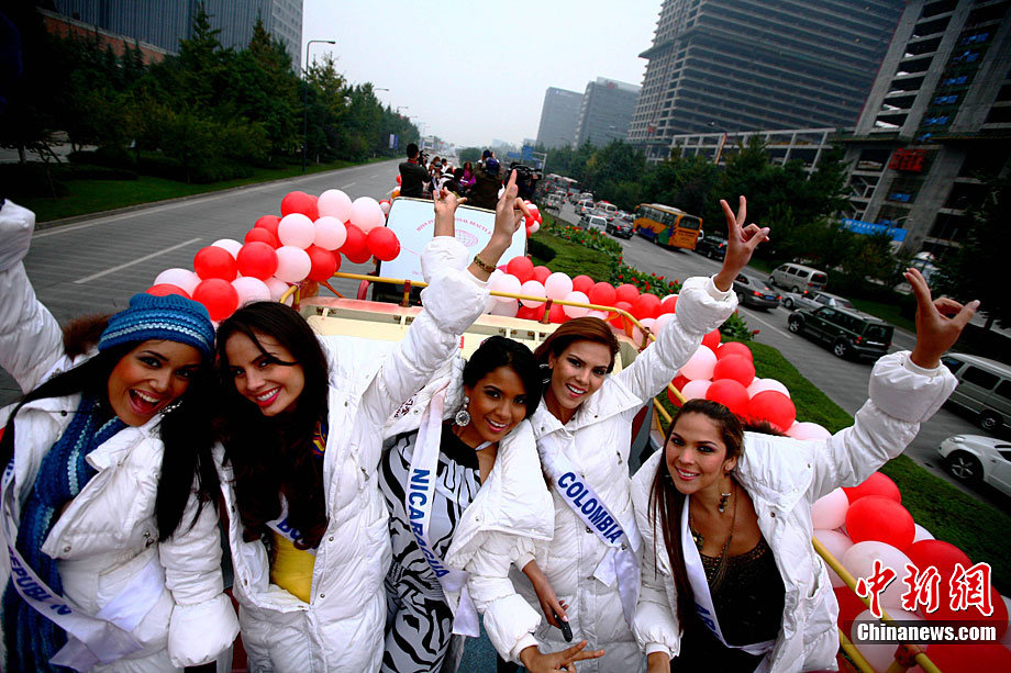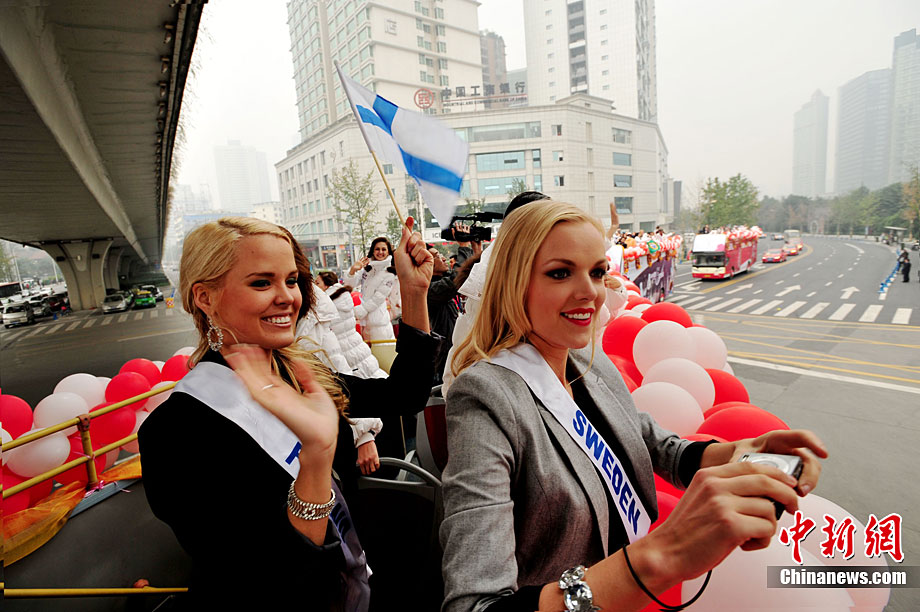 10月31日,國際小姐世界大會全球總決賽的70位參賽佳麗花車巡游成都市區(qū)。中新社發(fā) 安源 攝