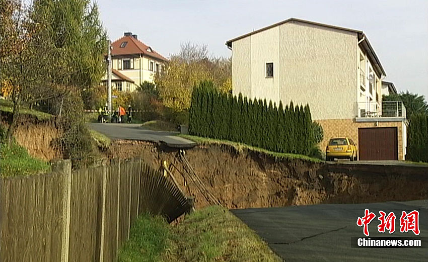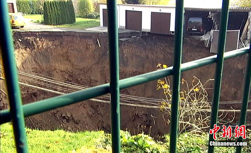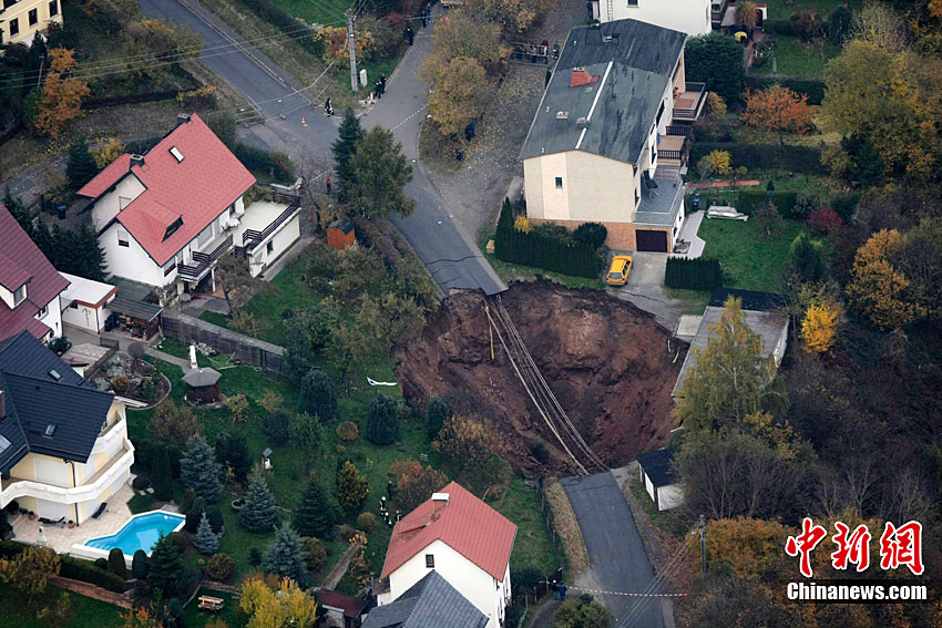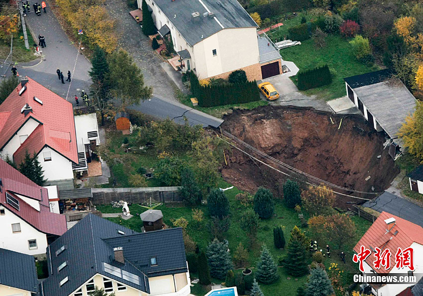 11月1日,在德國東部城鎮(zhèn)施馬爾卡爾登,車輛停在地面塌陷出現(xiàn)的坑洞旁。施馬爾卡爾登地區(qū)當(dāng)日出現(xiàn)地面塌陷情況,部分居民撤離了發(fā)生事故的地區(qū),目前無人因地面塌陷事故受傷。