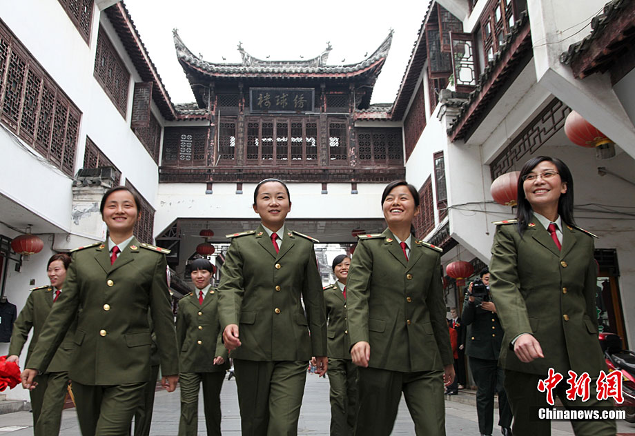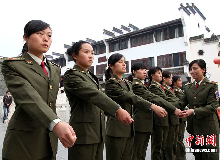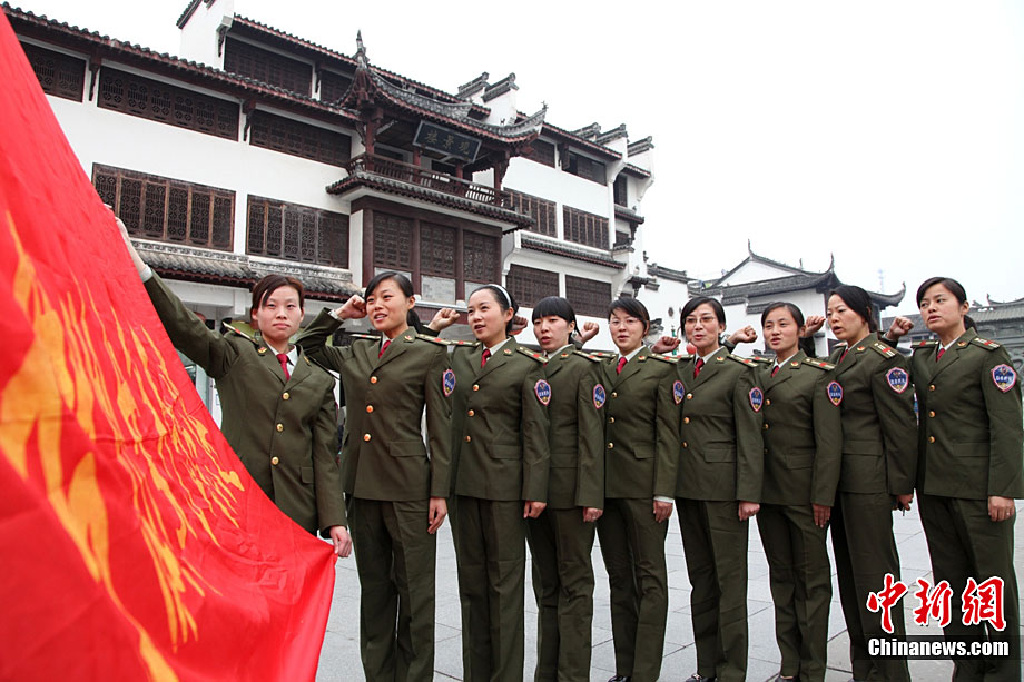 11月1日,安徽黃山歙縣古徽州女子民兵連的女民兵在訓練。歙縣古徽州女子民兵連是安徽省唯一一支女子民兵連,由100人組成,百分之百的大專以上學歷、百分之百的黨團員。去年3月8日成立以來,為歙縣古城的社會穩(wěn)定和各種搶險做出了卓有貢獻。瞧,她們的英姿多瀟灑。吳建平 攝