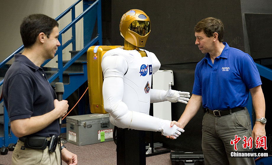 全球首個(gè)太空機(jī)器人(左)定于11月3日跟隨美國(guó)“發(fā)現(xiàn)”號(hào)航天飛機(jī)前往國(guó)際空間站,在那里度過(guò)自己的“一生”,它將在國(guó)際空間站完成一系列測(cè)試工作。據(jù)機(jī)器人設(shè)計(jì)者表示,它將在國(guó)際空間站完成一系列測(cè)試工作,但它的“后代”或許可以承擔(dān)太空行走、外星探險(xiǎn)等更加復(fù)雜、危險(xiǎn)的任務(wù)。