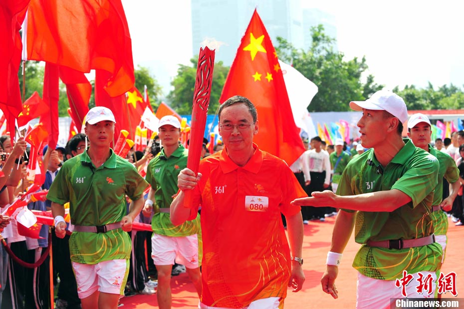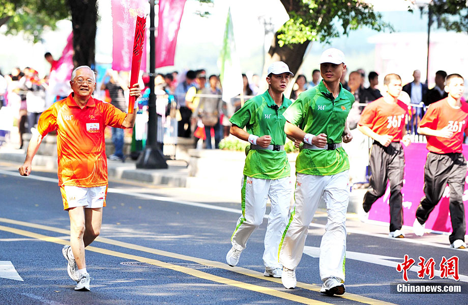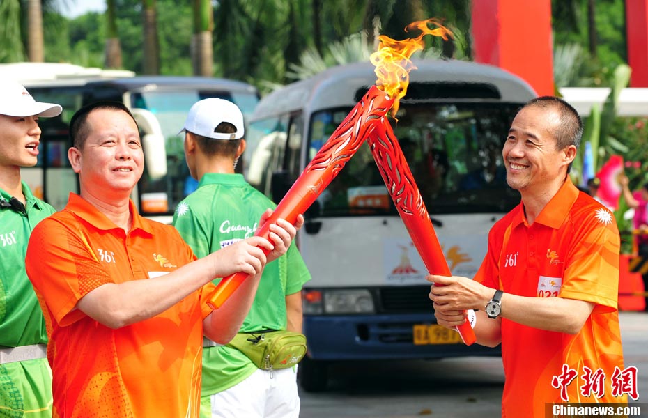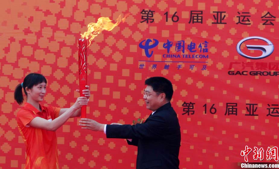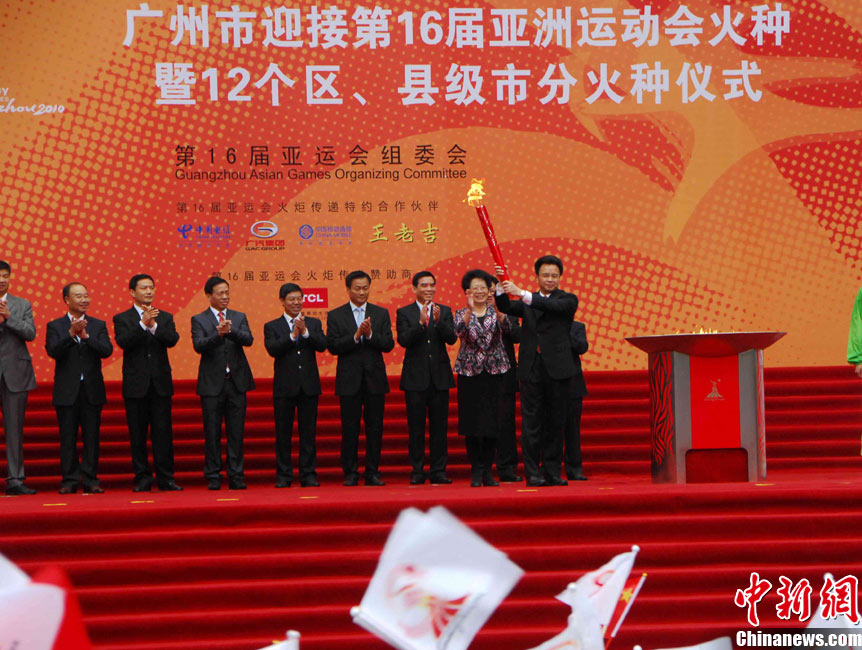 11月5日上午,廣州市政府府前廣場(chǎng)舉行了迎接第16屆亞運(yùn)會(huì)火種暨12個(gè)區(qū)、縣級(jí)市分火種儀式。從6日起至8日,亞運(yùn)會(huì)火炬將在各區(qū)、縣級(jí)市舉行火炬?zhèn)鬟f活動(dòng)。 中新社記者 柯小軍 攝