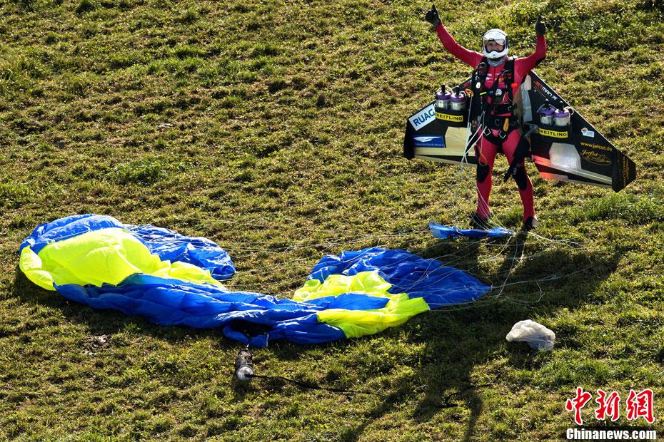 當?shù)貢r間2010年11月5日,瑞士貝爾謝“火箭人”伊夫-羅西使用裝有小型噴氣發(fā)動機的噴氣動力翼,首次完成空中翻轉(zhuǎn)特技。