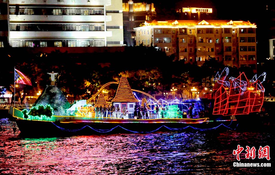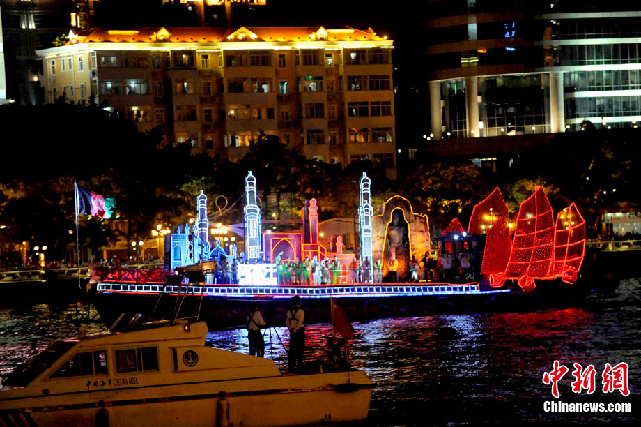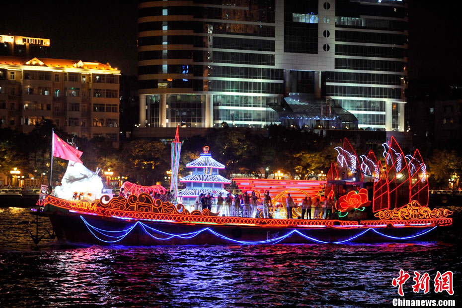 11月12日晚,萬眾企盼的2010年廣州亞運(yùn)會在珠江之中海心沙小島上啟航。亞奧理事會的45個(gè)成員全部參賽,再次實(shí)現(xiàn)亞奧理事會大家庭的大團(tuán)圓;ù灿问菑V州亞運(yùn)會開幕式的一大創(chuàng)舉。每艘花船都經(jīng)過精心的設(shè)計(jì)與裝扮,以亞洲各個(gè)國家和地區(qū)最具特色的名勝古跡為原型的造型成為花船的“身份標(biāo)志”。
