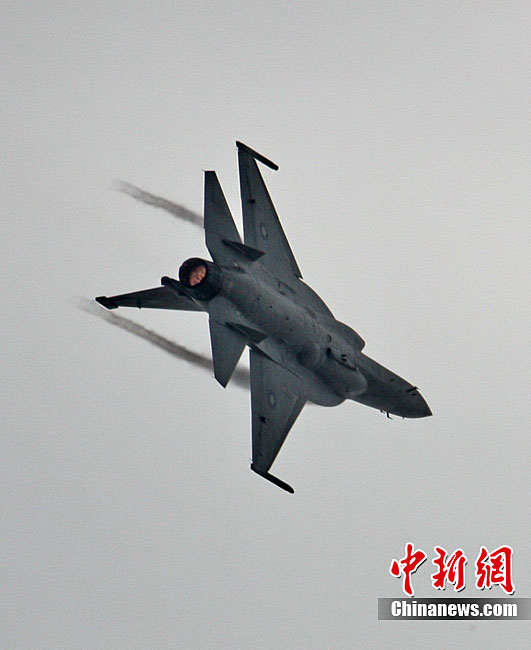 11月13日下午,巴基斯坦空軍“雄獅”飛行表演隊的飛行員駕駛k8教練機進行九機密集隊形飛行訓(xùn)練。昨日,巴基斯坦空軍“雄獅”飛行表演隊抵達珠海,這支表演隊由10架K8教練機和一架C130運輸保障機組成。由外國飛行員駕駛“中國造”飛機在中國航展上表演,必將是一道優(yōu)美而又特別的風(fēng)景。圖為巴基斯坦空軍“雄獅”飛行表演隊的飛行員駕駛k8教練機進行九機密集隊形飛行訓(xùn)練。圖片來源:CNSPHOTO 喬天富 攝
