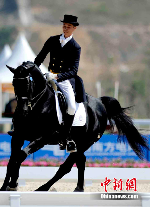 11月14日,廣州亞運馬術比賽在廣州馬術場舉行,這個號稱亞運最昂貴的比賽項目上駿馬、美女、帥哥齊全,據(jù)悉,比賽中的馬匹最少都要幾百萬人民幣,有的更高達幾千萬,參賽選手也云集了阿拉伯國家的皇室貴族和富豪。中新社記者 王東明 攝