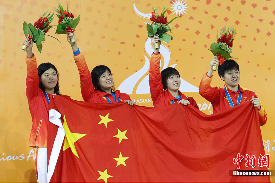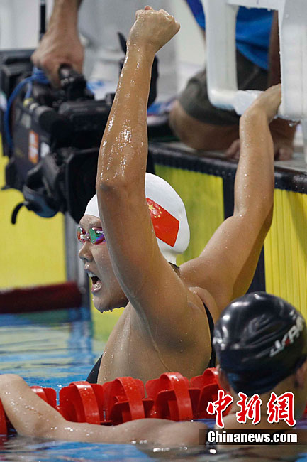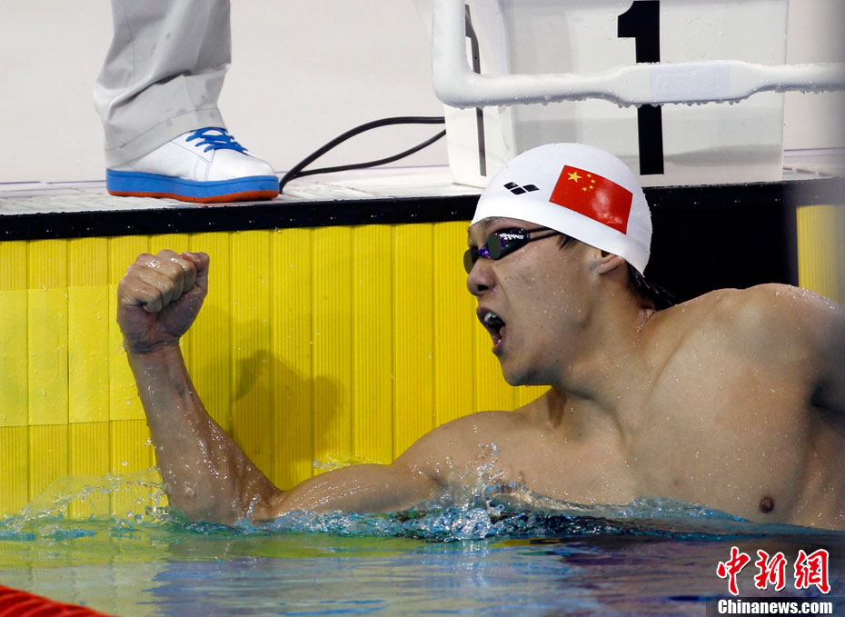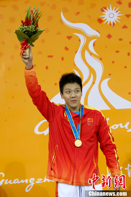 11月14日,廣州亞運(yùn)會(huì)上周嘉威奪得男子100米蝶泳冠軍。 中新社記者 盛佳鵬 攝