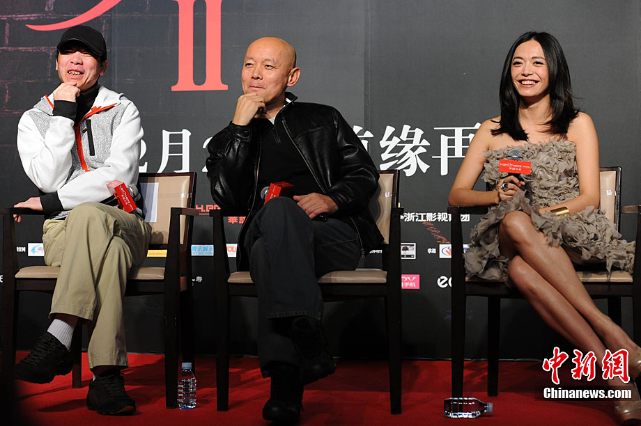 11月14日,將于12月22日賀歲上映的《非誠勿擾2》在北京舉行發(fā)布會,發(fā)布電影的美景花絮,并隆重介紹本次影片與北京市旅游局的合作。發(fā)布會上,除主演葛優(yōu)外,姚晨、安以軒、廖凡、邵兵并未參演前作《非誠勿擾》的拍攝,這也是續(xù)集新成員的第一次集體亮相。發(fā)布會上馮小剛導(dǎo)演證實,“《非誠勿擾2》海報上蒙葛優(yōu)眼睛的手是姚晨的!爆F(xiàn)場媒體要求姚晨與葛優(yōu)情景重現(xiàn),盡管姚晨笑說,她跟舒淇是好姐妹,不能在人不在的時候占秦奮便宜。但還是難以抵擋眾人要求盛情難卻,現(xiàn)場蒙住了葛優(yōu)雙眼并送上香吻,葛優(yōu)事后享受地說“不錯”。中新社記者 李學(xué)仕 攝