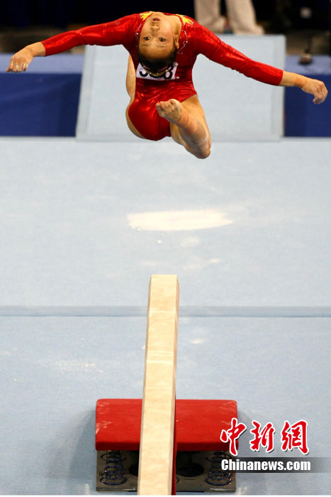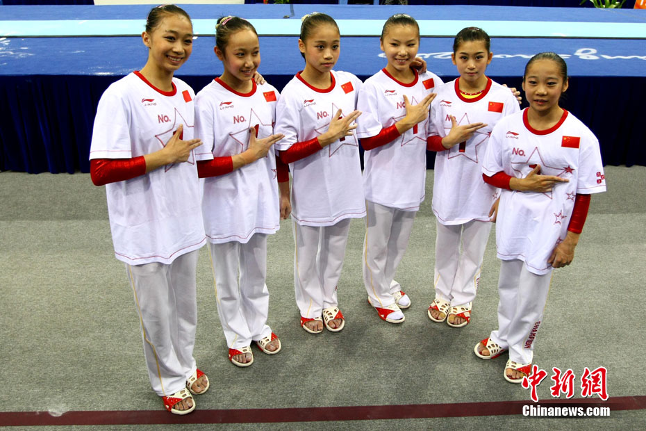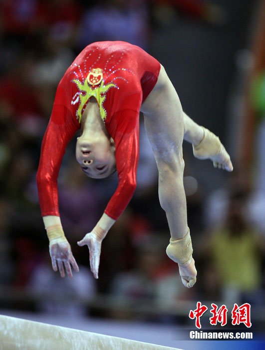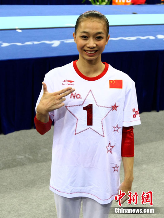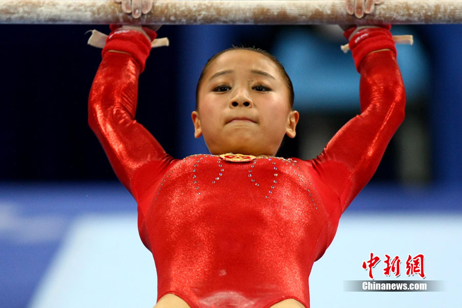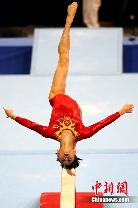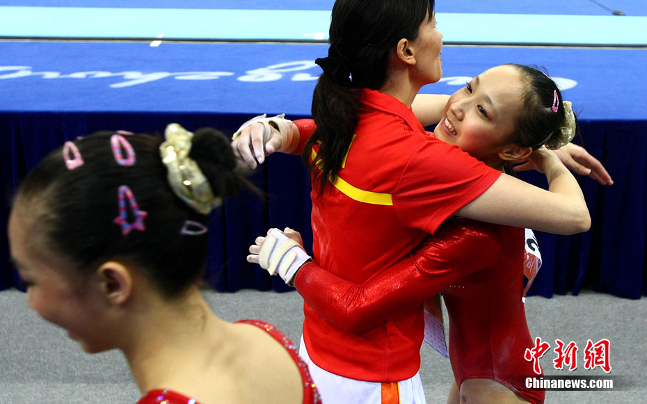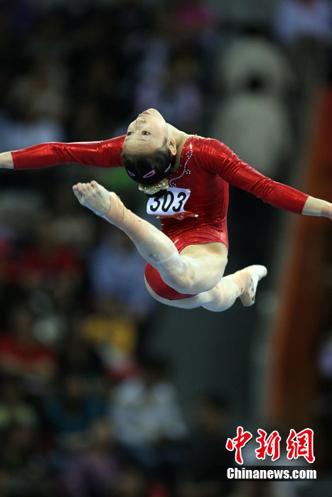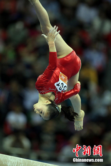 11月14日,在廣州亞運(yùn)會(huì)女子體操團(tuán)體決賽中,中國(guó)隊(duì)擊敗日本隊(duì)奪冠,實(shí)現(xiàn)了亞運(yùn)會(huì)的“十連冠”。中新社記者 富田 攝