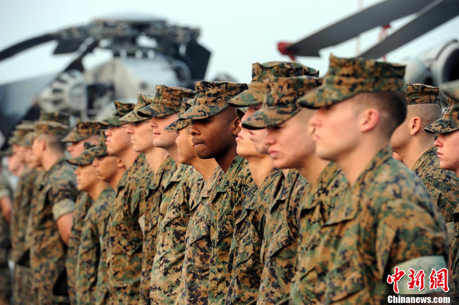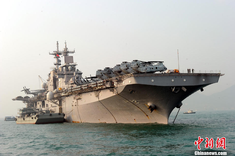 11月16日,美國(guó)海軍黃蜂級(jí)埃塞克斯號(hào)兩棲攻擊艦,?肯愀圻M(jìn)行補(bǔ)給。該艦搭載有AV-8B“鷂”式戰(zhàn)機(jī)、CH-53E“海上種馬”直升機(jī)、CH-46E“海上騎士”直升機(jī)、UH-1N超級(jí)休伊直升機(jī)等逾30架各型機(jī)型。中新社記者 鄭祚聲 攝