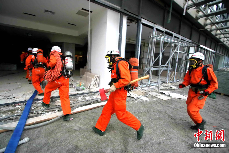 中新網(wǎng)福州11月18日電 (朱曉航 黃綠榮)為吸取“11.15”上海市靜安區(qū)膠州路在建高層教師公寓樓特大火災(zāi)事故教訓(xùn),福州18日在該市臺江區(qū)舉行了一場大型滅火救援演練。