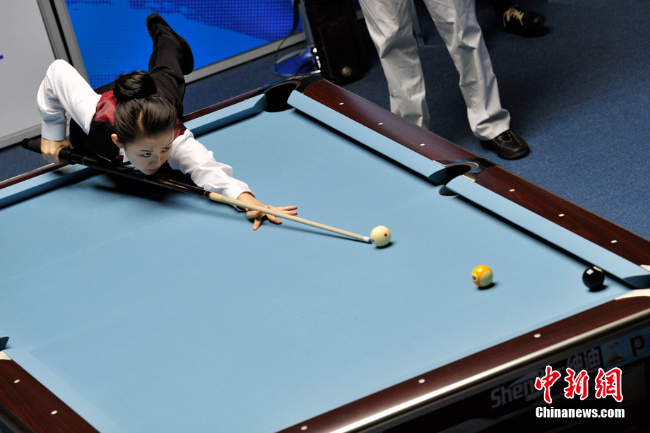 11月19日下午,廣州亞運(yùn)會女子美式9球單打決賽在亞運(yùn)城體育館上演,經(jīng)過2個多小時的激烈角逐,中國選手潘曉婷以7:5力克中華臺北選手周婕妤,最終奪冠。中新網(wǎng)記者 金碩 攝